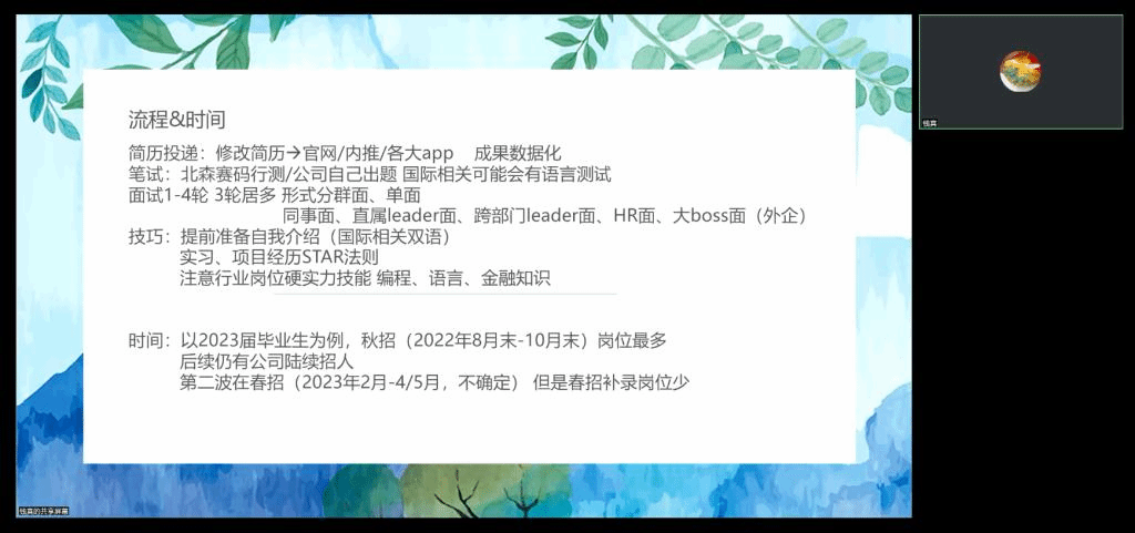 学业与职业支持中心举办“就业经验分享沙龙”系列活动之实习就业专场。本次分享会邀请已获得快手、阿里、顺丰、京东、比亚迪等大厂录用通知的钱真同学,就职于字节跳动的黄皙雲同学,为大家讲解求职的面试流程、注意事项、简历撰写等问题,为有相关求职意向的学生提供借鉴经验,帮助其调整优化自身发展计划。