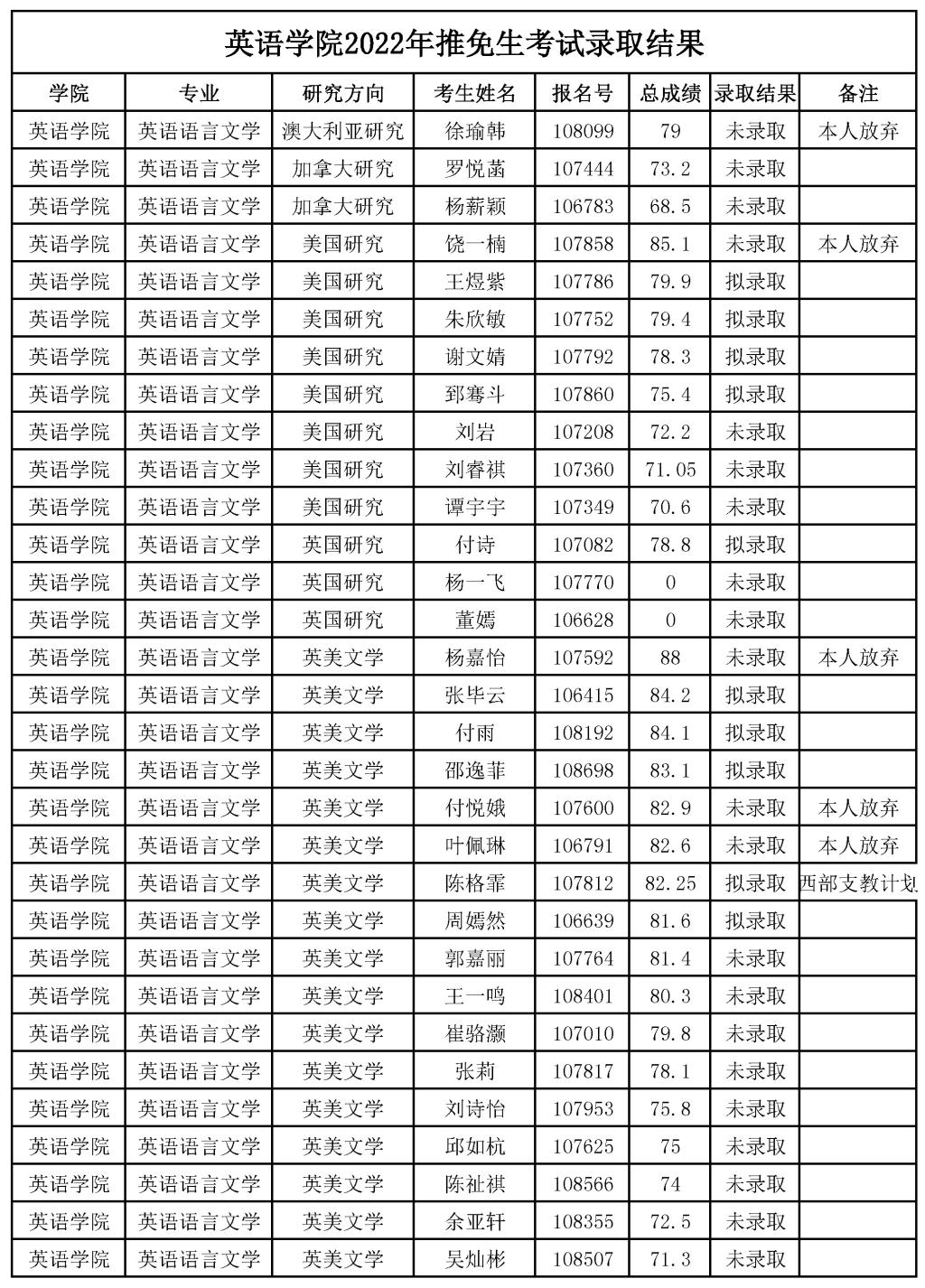 海角视频 2022年推免生考试录取结果公示