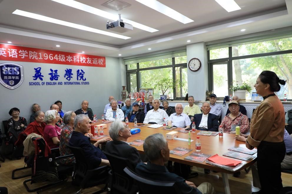 秋高气爽,9月20日,正值北京外国语大学建校84周年校庆日,英语学院1964级校友重返母校,于英语学院111会议室举行了一场温馨而庄重的聚会。来自全国各地40余名老校友齐聚一堂,重温青春岁月,共叙同窗情谊,见证母校发展。原64级学生辅导员蓝葆春老师、英语学院党总支书记殷悦、党总支组织员兼校友事务办公室主任王欣扬出席活动。联谊会由1964级校友邵明信主持。