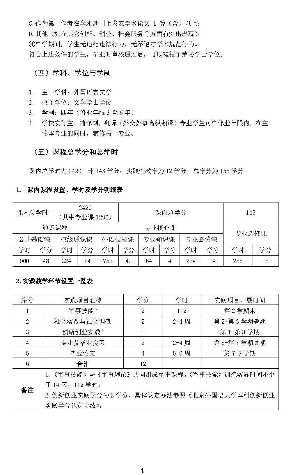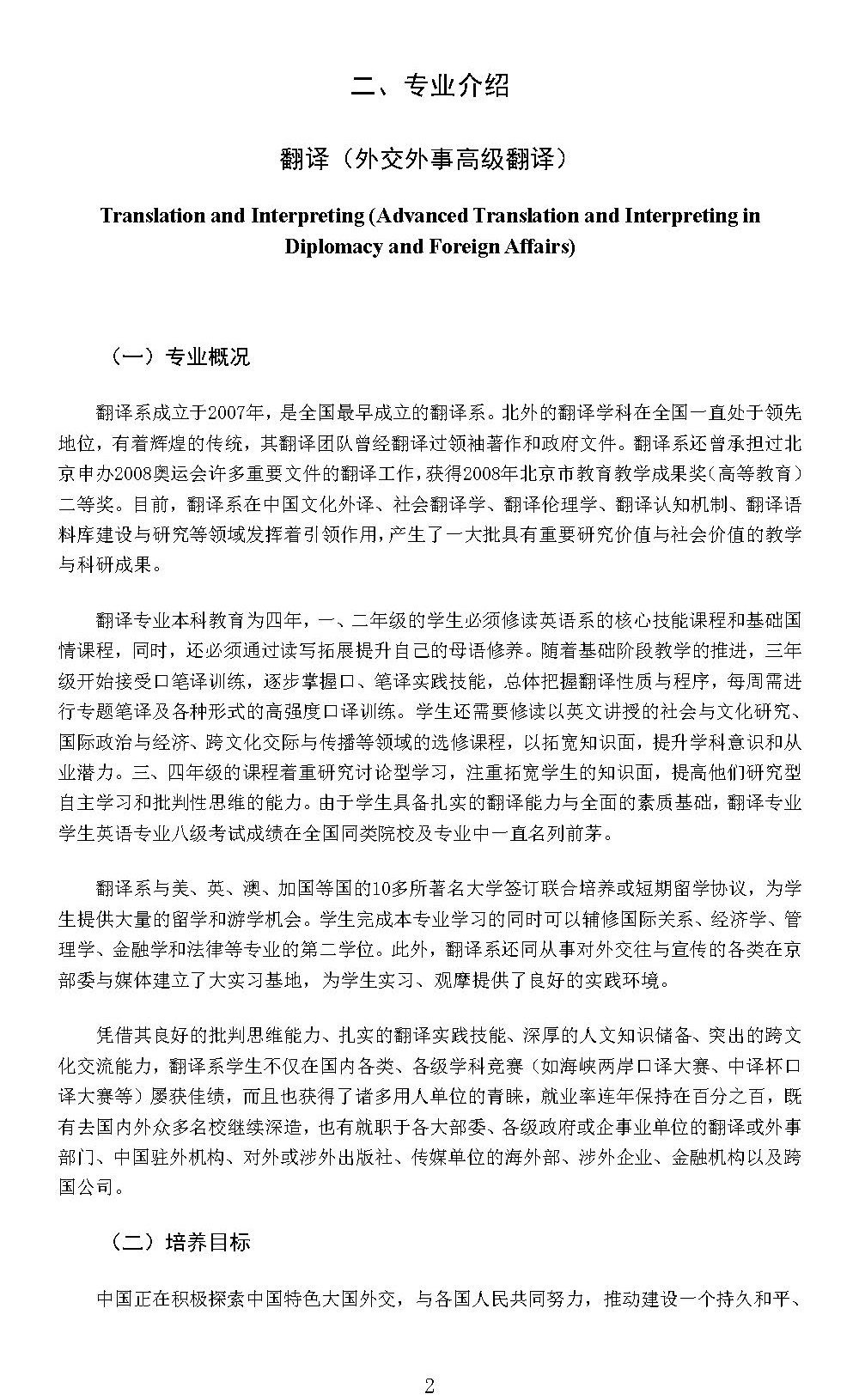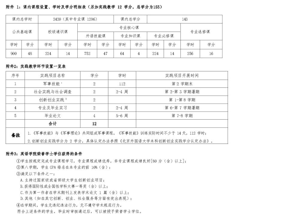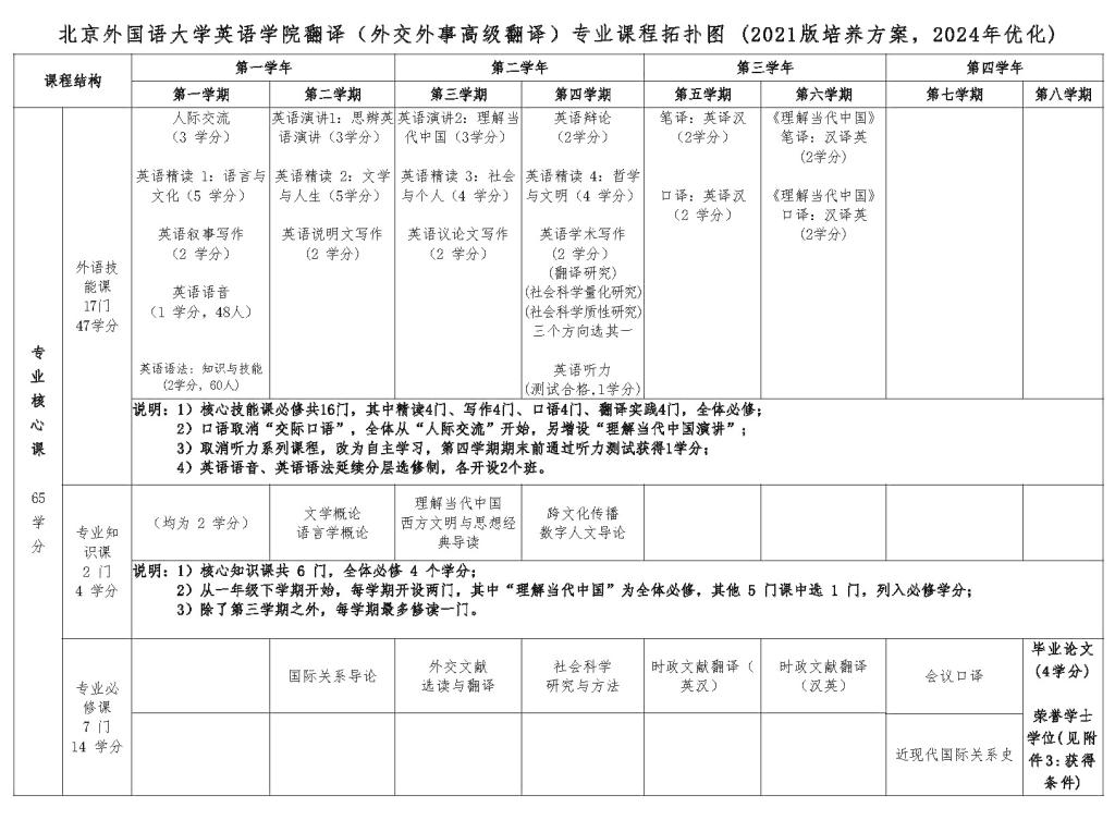 英语学院翻译(外交外事高级翻译)专业本科培养方案(2024)