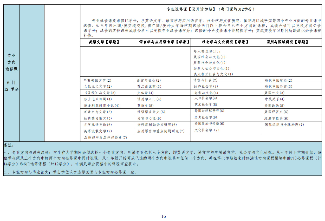 英语学院英语(国别与区域研究)专业本科培养方案(2024)