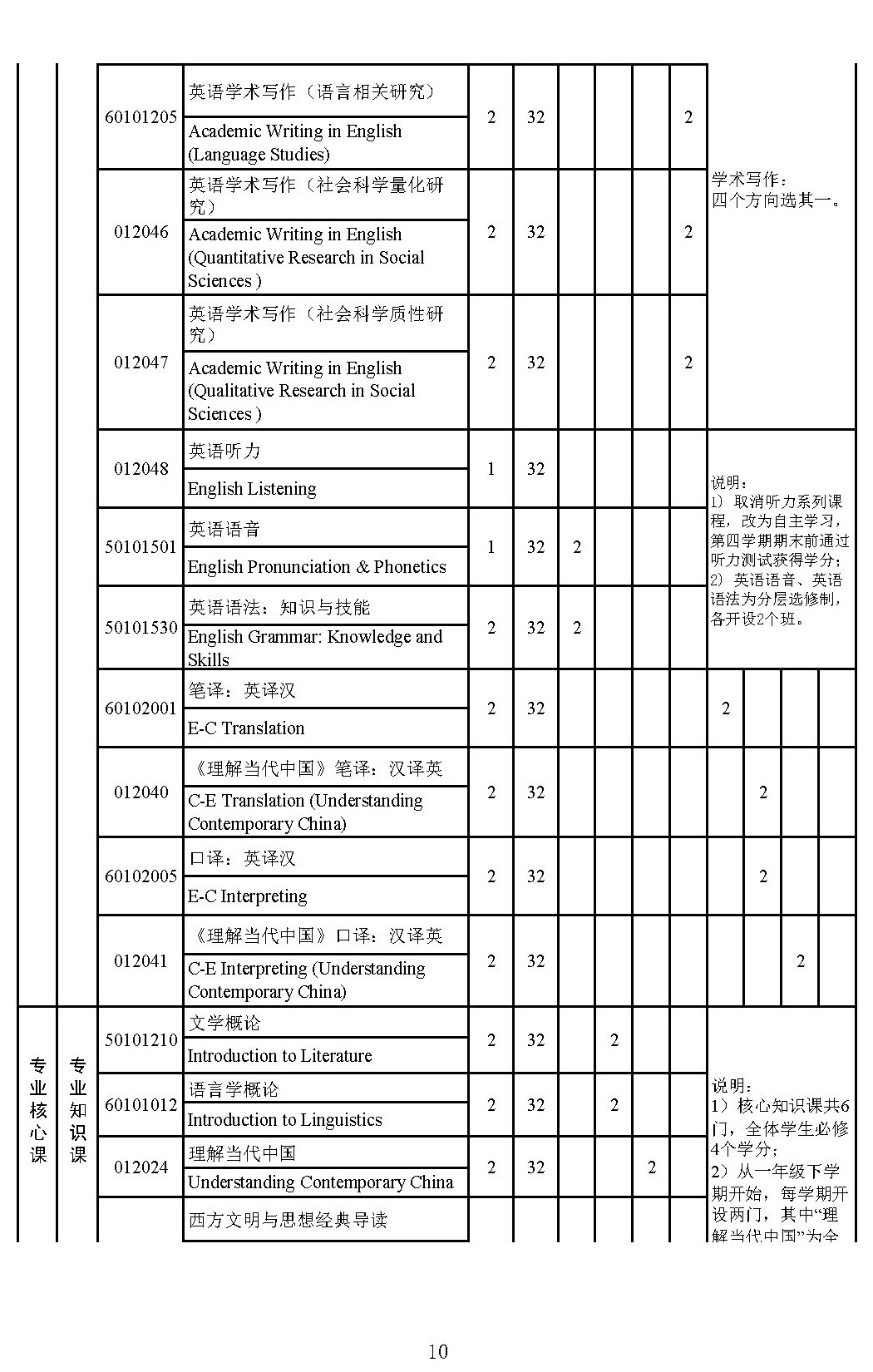 英语学院翻译(外交外事高级翻译)专业本科培养方案(2024)