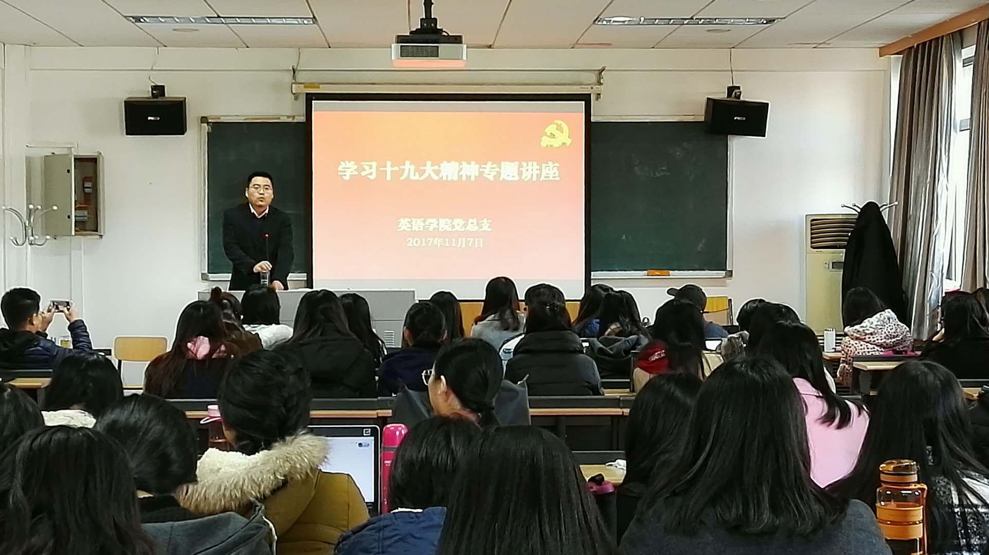 2017年11月7日下午,英语学院邀请学校马克思主义学院党总支书记祝和军做了关于十九大精神学习的专题讲座。