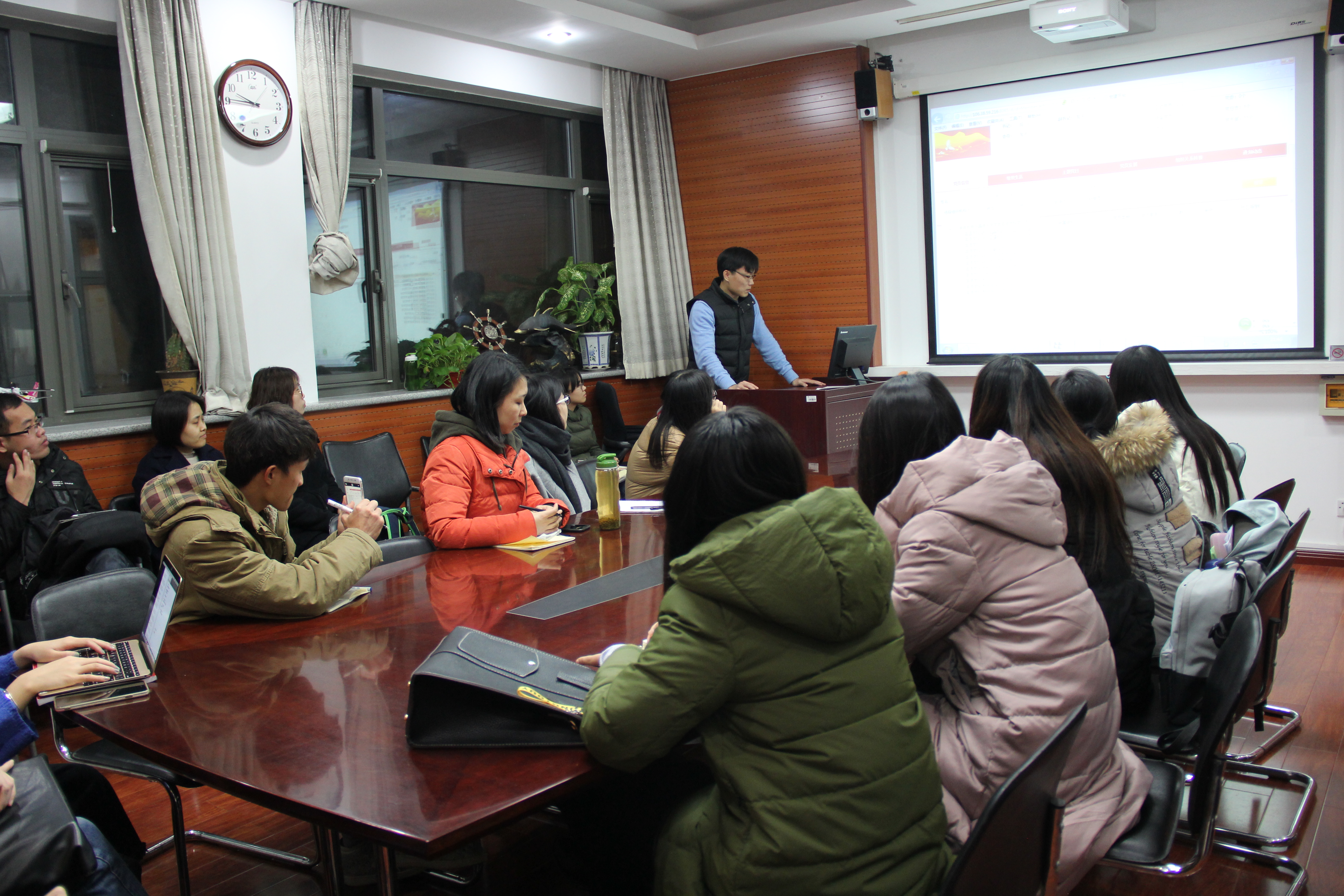 路兴老师从五方面强调了近期几项工作的注意事项。一是各支部党员要高度重视此次党建评估工作,统一思想,提高认识,以此为契机厘清各项工作,完善活动机制,激活支部活力;二是依托北京市党建工作平台,做好党员信息数据库的维护,及时落实好转入、转出党员的关系转接工作,定期进行发展新增党员信息录入维护工作,保证新增党员及时入库,离校党员及时离库;三是各党支部要继续开展以十九大为主题的各项活动,鼓励党员同志以各种形式领会、内化十九大会议精神,提高党员同志理论水平;四是各支部工作要注意细节,支部书记要严格把关,特别是在每次工作、活动之后,支部书记要及时做好总结宣传;五是各党支部书记要敢于对党员同志提出要求,要不忘入党初心,时刻警醒自己,不论在校学习还是将来走上社会,一定要将党纪挺在前面,做一个服务社会有益于他人的好公民、好党员。于承杰老师就党员信息维护工作向各党支部做了具体部署和要求。