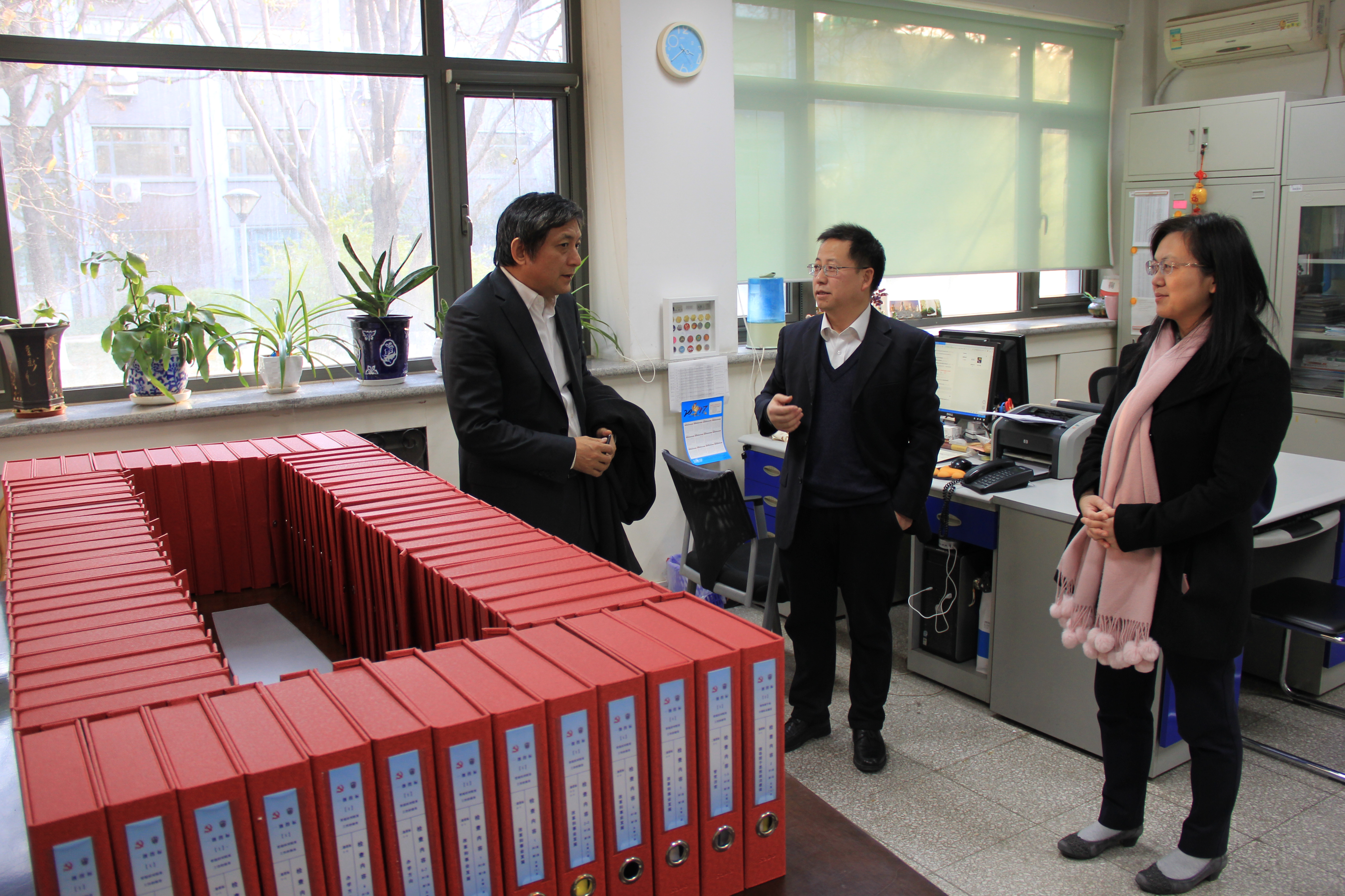 彭龙校长听取了英语学院党总支书记路兴的汇报,对院系的扎实准备工作予以充分肯定。他指出,《基本标准》入校检查是深入贯彻党的十九大和习近平总书记重要讲话精神,落实全面从严治党要求,以首善标准加强和改进北京高校党建和思想政治工作的重要举措。从检查的情况来看,全校上下都能够充分认识《基本标准》入校检查的重大意义,按照《基本标准》的各项要求做了充分的准备。各党总支(直属党支部)、各部门在自查自评时,要系统地梳理近五年来的改革和发展工作实践,深入总结经验和成效,凝练特色工作案例,全面、生动地展现学校蓬勃向上的发展态势和清正有为的政治风气。