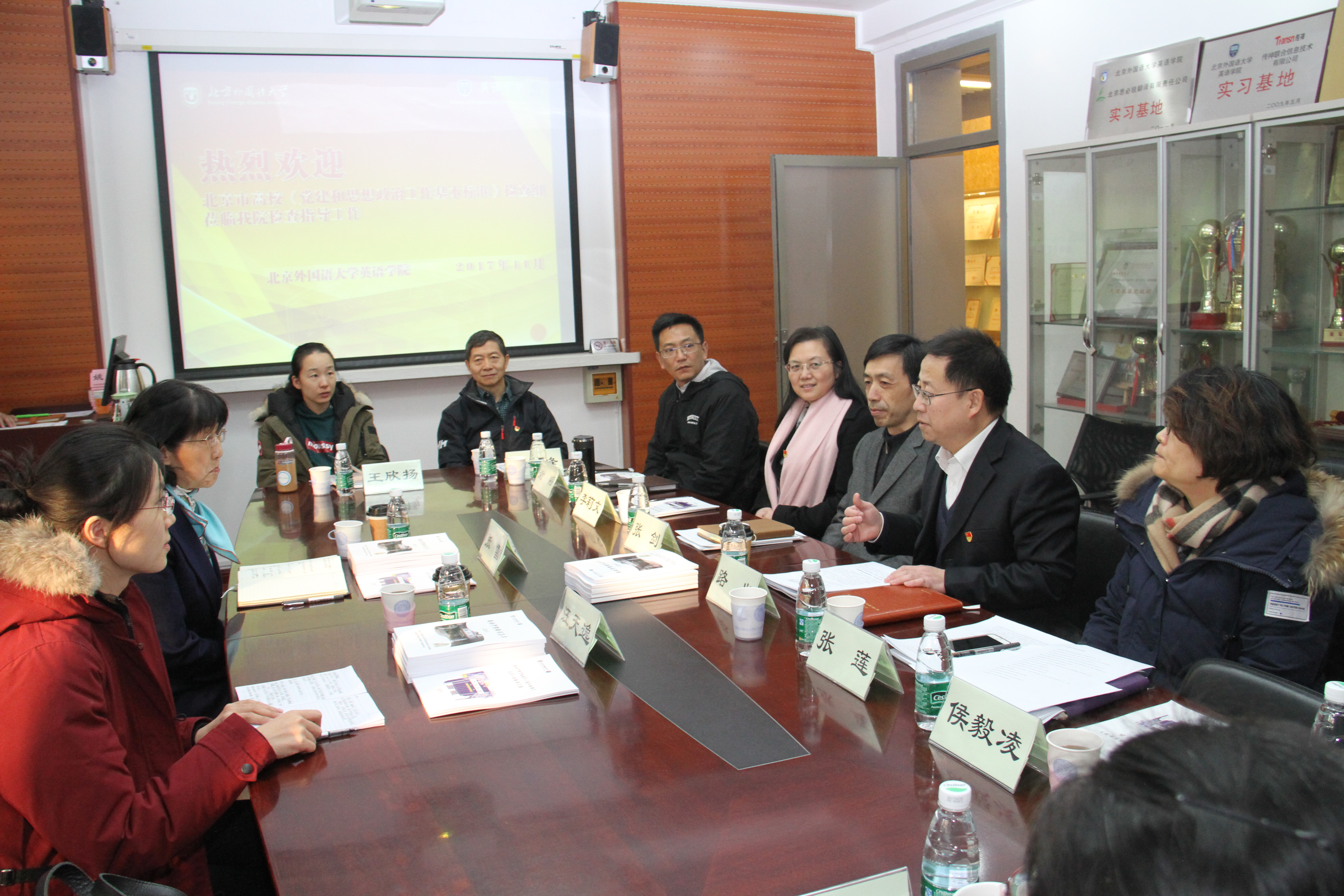 2017年11月27日下午,北京高校《党建和思想政治工作基本标准》检查组组长、市委教工委原常务副书记张雪在检查学校贯彻落实《基本标准》情况时莅临英语学院调研。