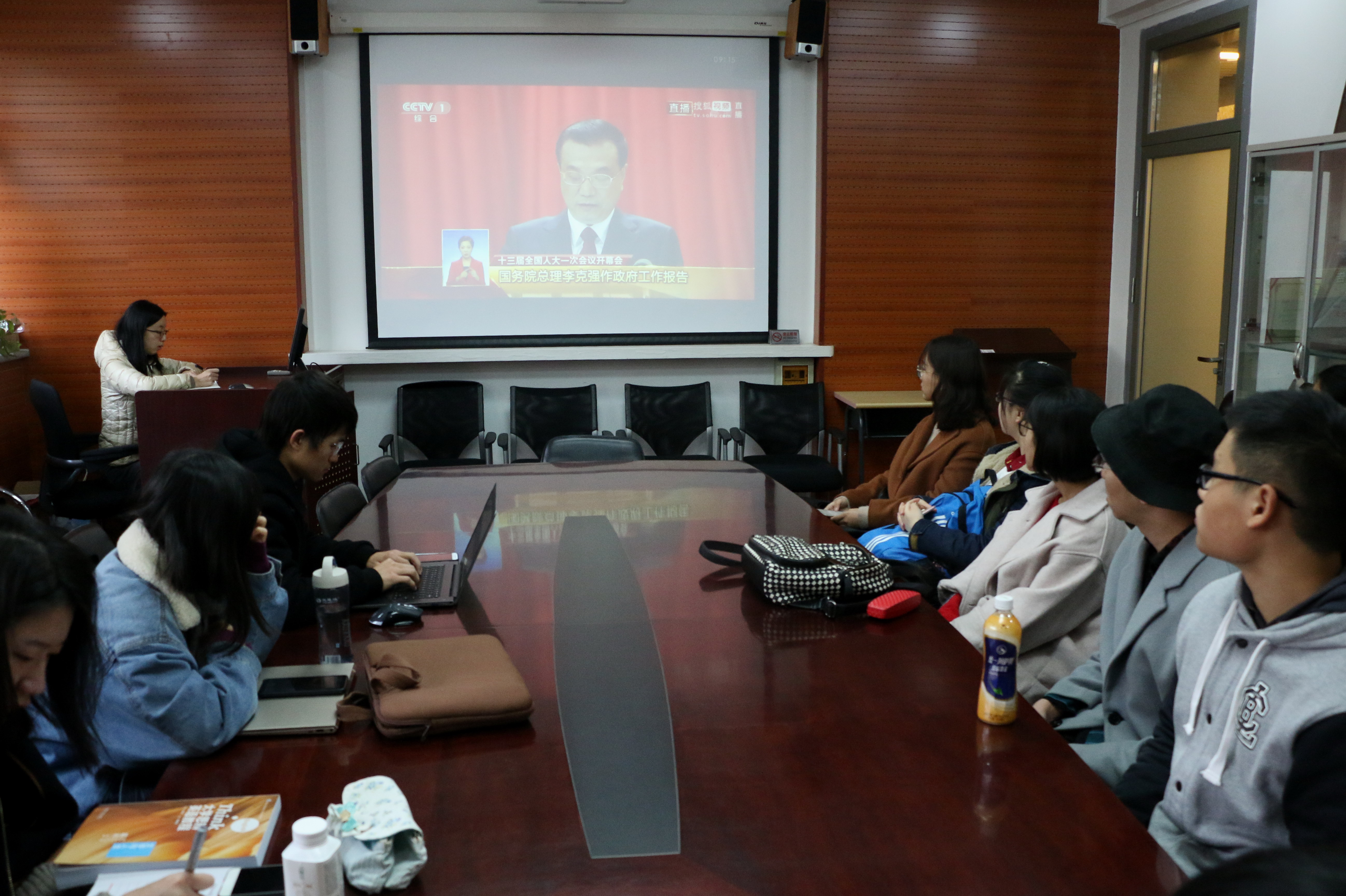 3月5日上午,第十三届全国人大一次会议在北京开幕。国务院总理李克强代表国务院,向大会报告过去五年政府工作李克强总理作政府工作报告,对今年工作提出建议。英语学院组织师生在115会议室现场收看,党总支书记路兴、辅导员及部分学生团支部书记、学生骨干、入党积极分子等参会学习。
