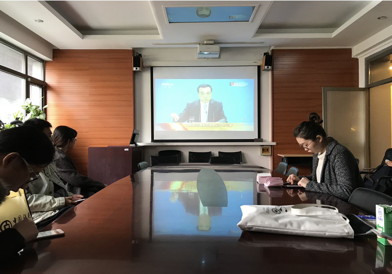 3月20日(星期二)上午,十三届全国人大一次会议闭幕后,国务院总理李克强在人民大会堂金色大厅会见采访十三届全国人大一次会议的中外记者并回答记者提出的问题,这是每年两会的“压轴大戏”。英语学院组织师生观看现场直播,辅导员及部分学生党、团支部书记,学生骨干参会学习。