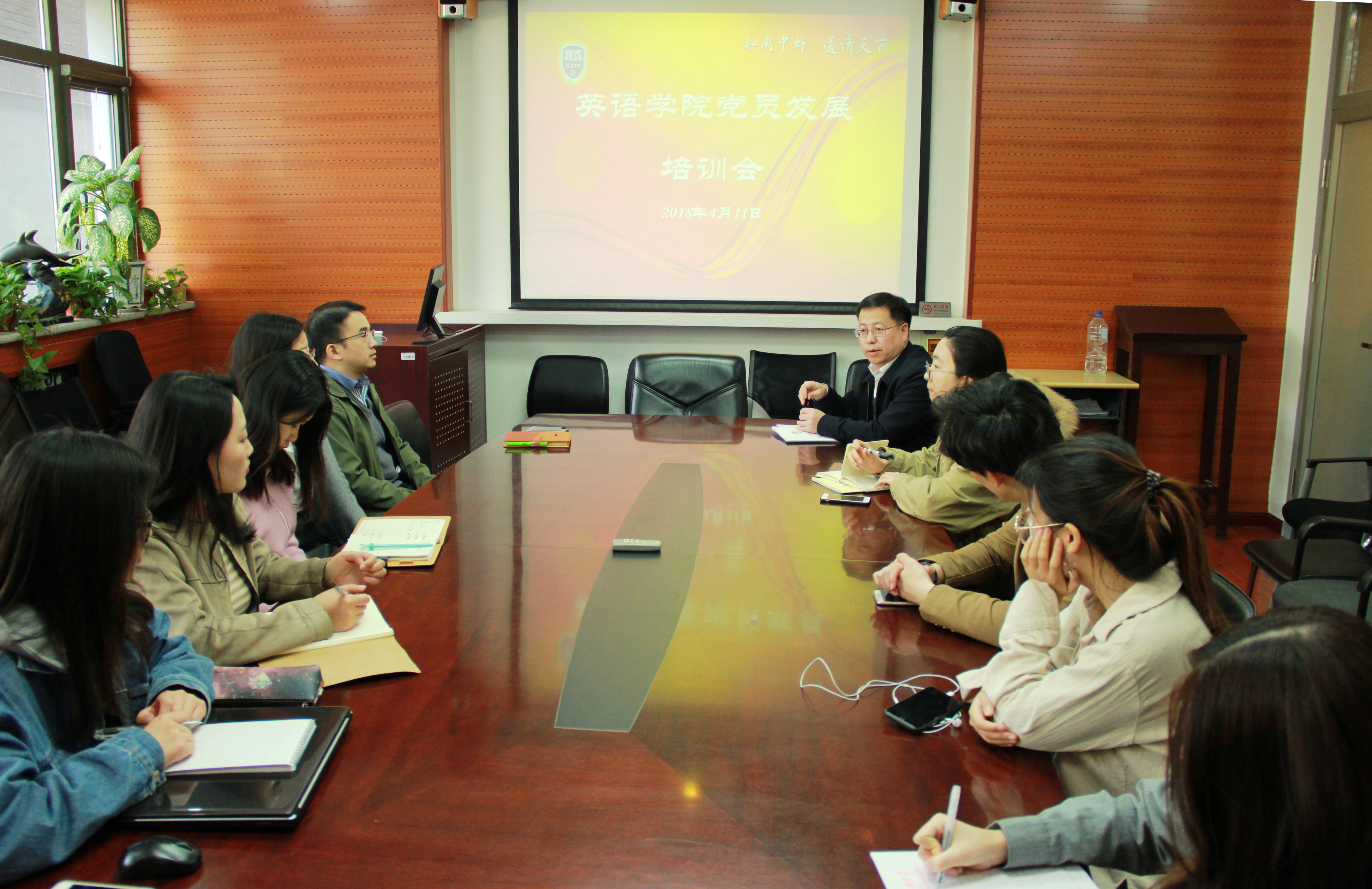 2018年4月11日下午,英语学院党总支召开学生党支部书记党员发展培训会。会议邀请了党委组织员,校档案馆、校史馆馆长姚胜副教授进行讲解。学生党支部书记、辅导员于承杰参加。会议由党总支书记路兴主持。