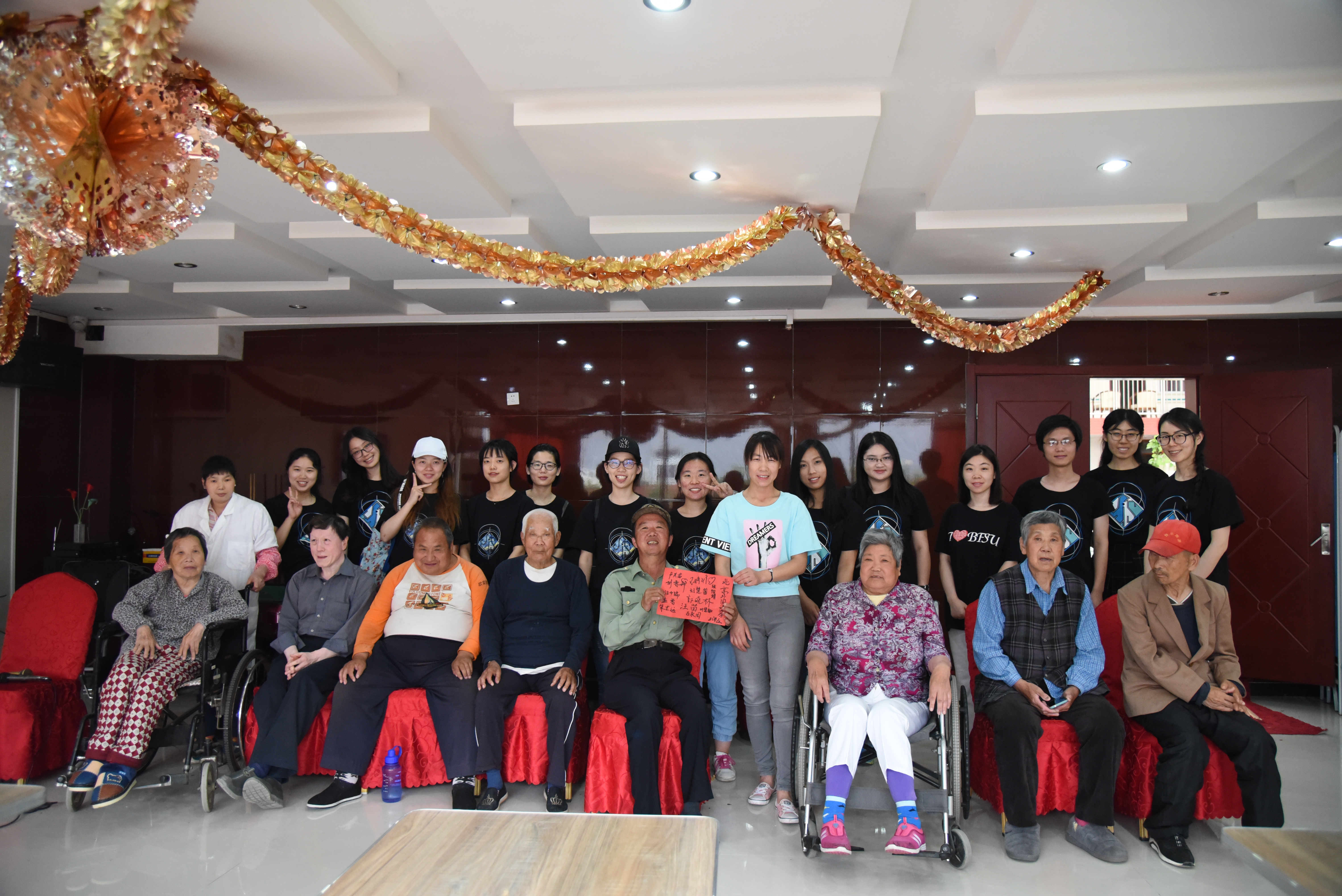 ——下午是小组活动,老人们按照兴趣入组活动,包括书法组、象棋组、英语组、折纸组。学生党员们与老人们一起活动,其乐融融。至此,老人们和党员们相亲相爱,像一家人。