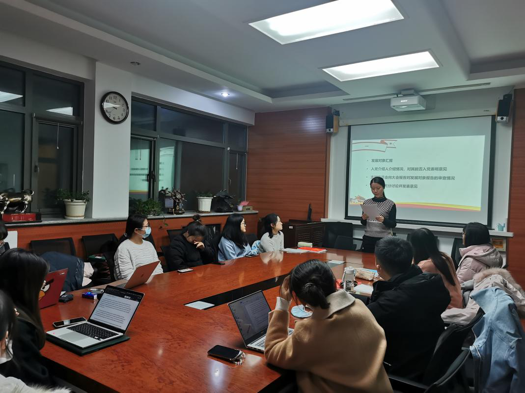 2020年11月24日晚,英语学院研究生语言学党支部在英语学院115会议室召开全体党员会议,讨论王茗阅同志的入党事宜,并组织支部党员围绕“决战决胜脱贫攻坚”进行学习和讨论。会议由党支部副书记董芸芳同志主持,支部全体党员、预备党员参加。