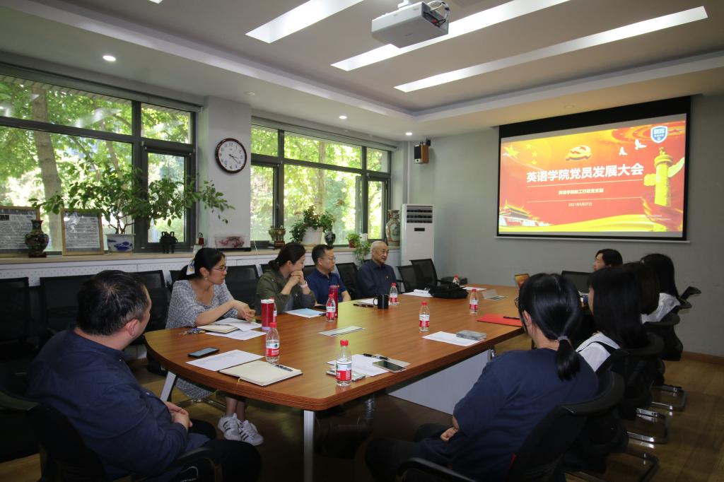 2021年5月27日,英语学院教工行政党支部在英语楼111会议室召开讨论接收陈照和李亭亭为中共预备党员的党员发展会。联系英语学院党总支的党委组织员万里老师出席会议。会议由教工行政党支部书记王欣扬同志主持。