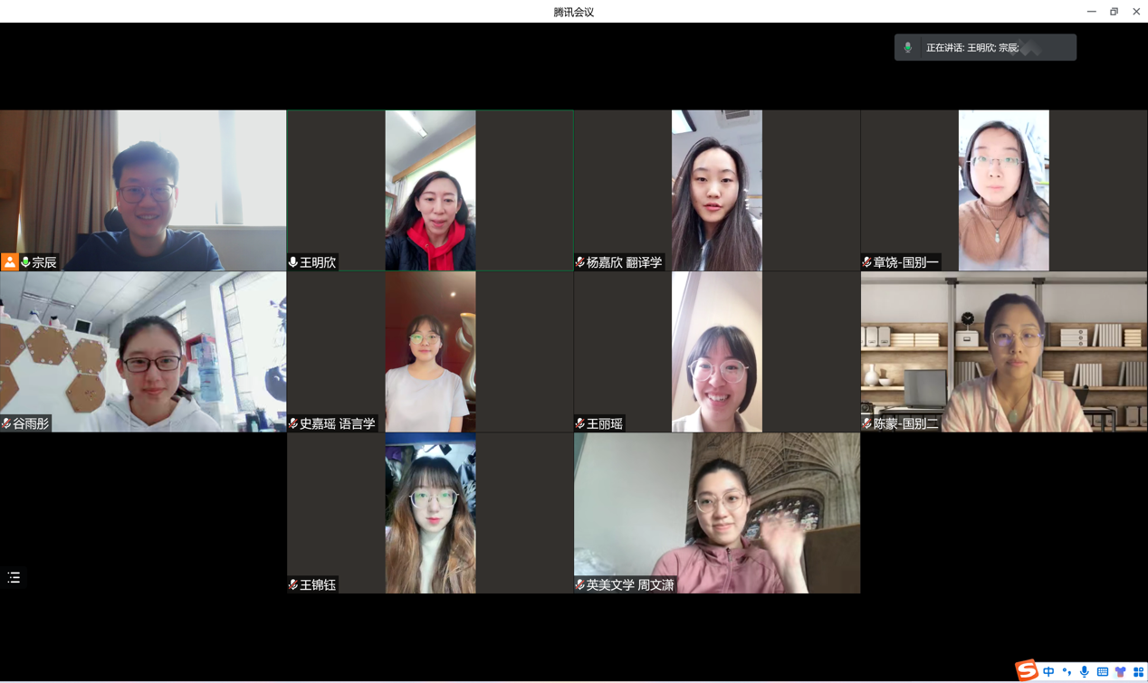 316日,英语学院党总支通过线上腾讯会议的形式召开了新学期学生党建工作会。会议对各支部正在进行的工作进行了梳理,并对新学期的工作进行了部署安排。学院党总支书记王明欣、辅导员宗辰和各学生党支部书记参加会议。