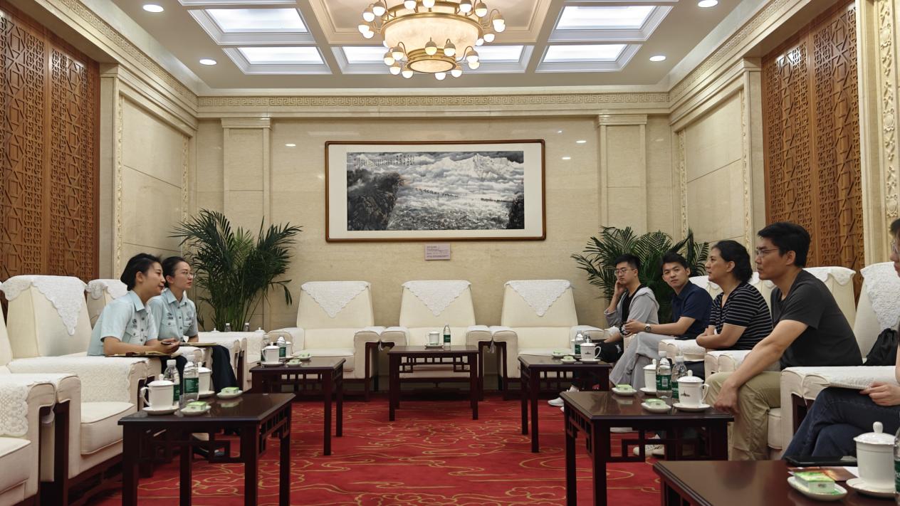 参观学习后,军博解说队队长黄策、宣教室支部委员赵小小、英语学院党总支书记殷悦、党总支宣传委员于承杰老师与笔译支部书记孙琪、副书记董芳衍等支部委员就双方共建合作事宜展开座谈。