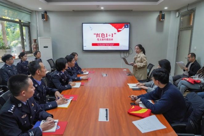 10月23日,英语学院翻译学党支部与北京边检总站执勤一大队和执勤二大队党支部成功举办了红色“1+1”支部共建活动。此次活动以“携手共进,党建引领发展”为主题,旨在深化两个基层党组织之间的合作与交流,实现资源共享和优势互补。