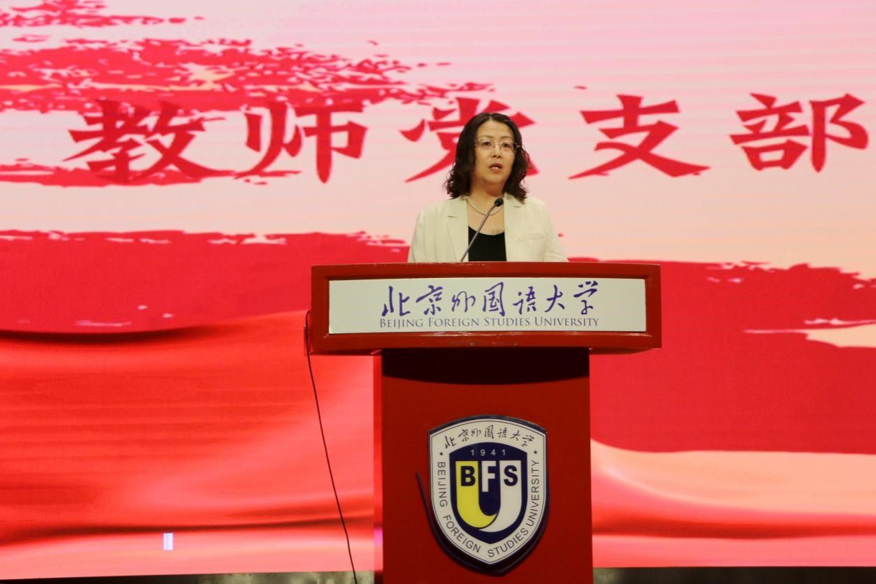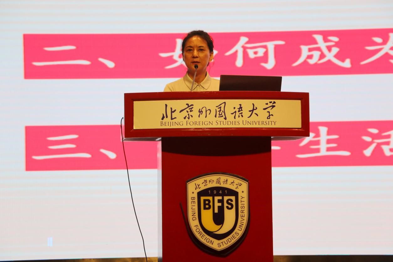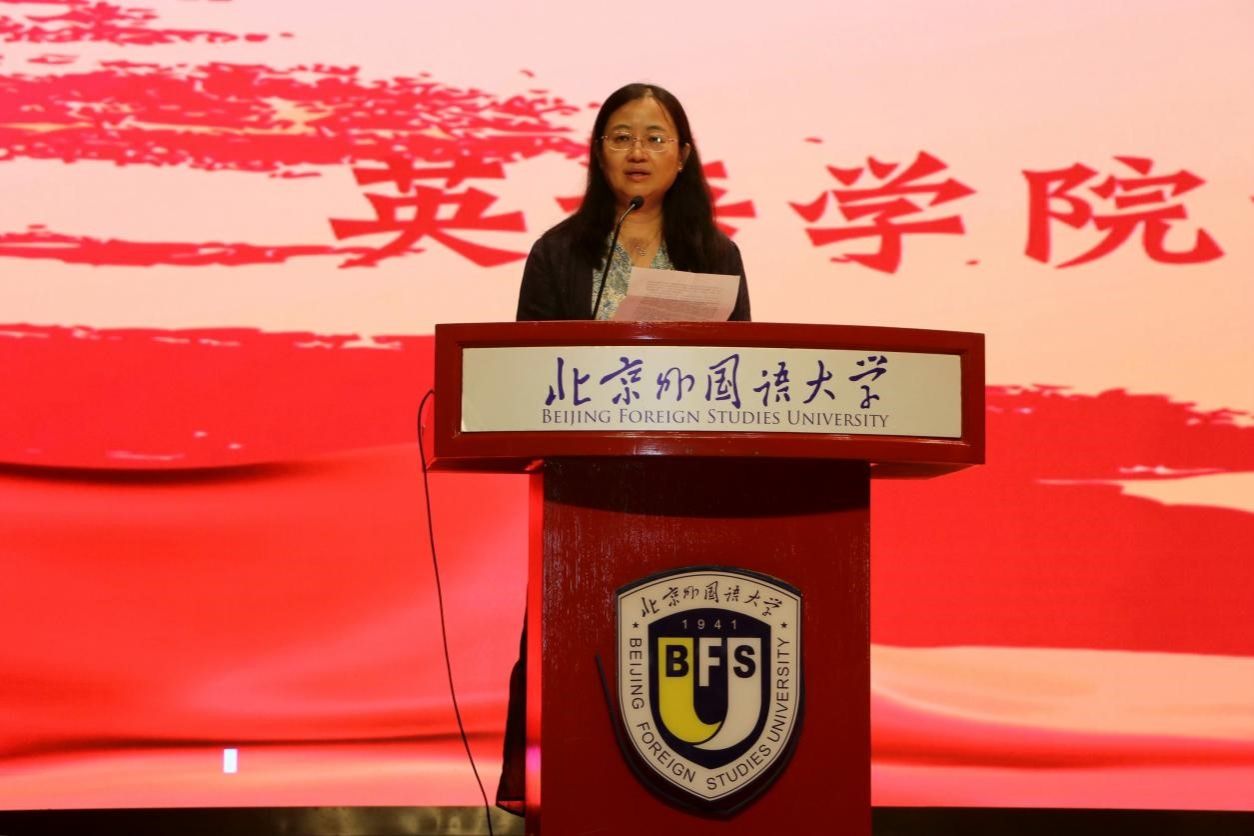 最后,英语学院党总支书记殷悦进行新生党课教育,她回顾了近代中国的百年屈辱史,讲述了中国共产党的初心和使命、共产党人的精神谱系、始终坚持以人民为中心以及勇于自我革命的品格。希望同学们传承北外红色基因,努力成为有家国情怀、有全球视野、有专业本领的复合型人才,成为勇担国家使命的新时代青年,为第二个百年奋斗目标中华民族伟大复兴贡献自己的力量。