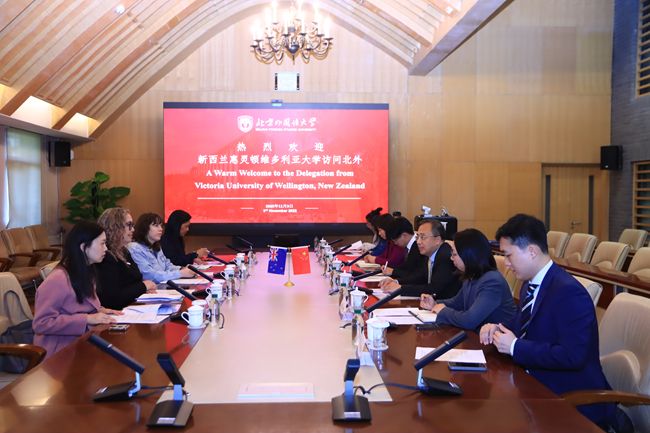 新西兰惠灵顿维多利亚大学国际事务主任埃米·拉瑟福德、全球参与与合作事务副主任乔安娜·兰伯特、中国事务主任曹娟,北外国际交流与合作处副处长龚婧,英语学院副院长彭萍、南太平洋语言与文化中心主任窦薇、毛利语教师杜邦国、汤加语教师李菅等参加会见。