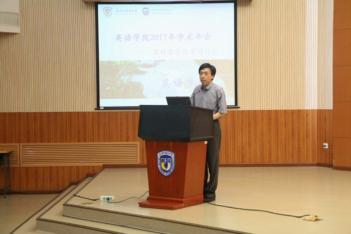 ——英语学院主管教学的副院长张莲教授的发言题目为“英语学院本科教学改革:现状、问题与思考”。她比较了英语学院2007、2012、2016年本科培养方案,认为技能课在英语学院的课程设置中并没有受到忽视,而是在近两年内有所加强。英语学院的本科教学改革与世界上英语教学的改革探索遥相呼应,顺应了世界英语教学改革的潮流。