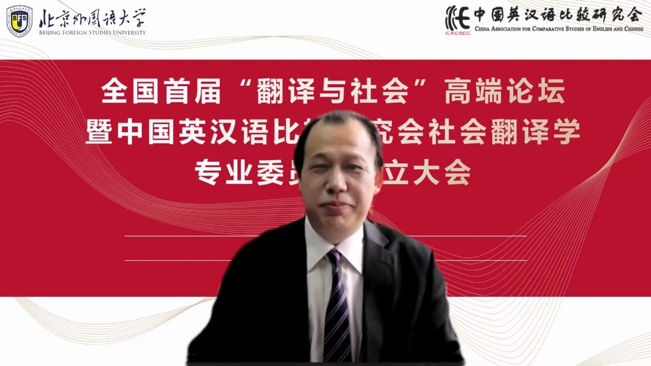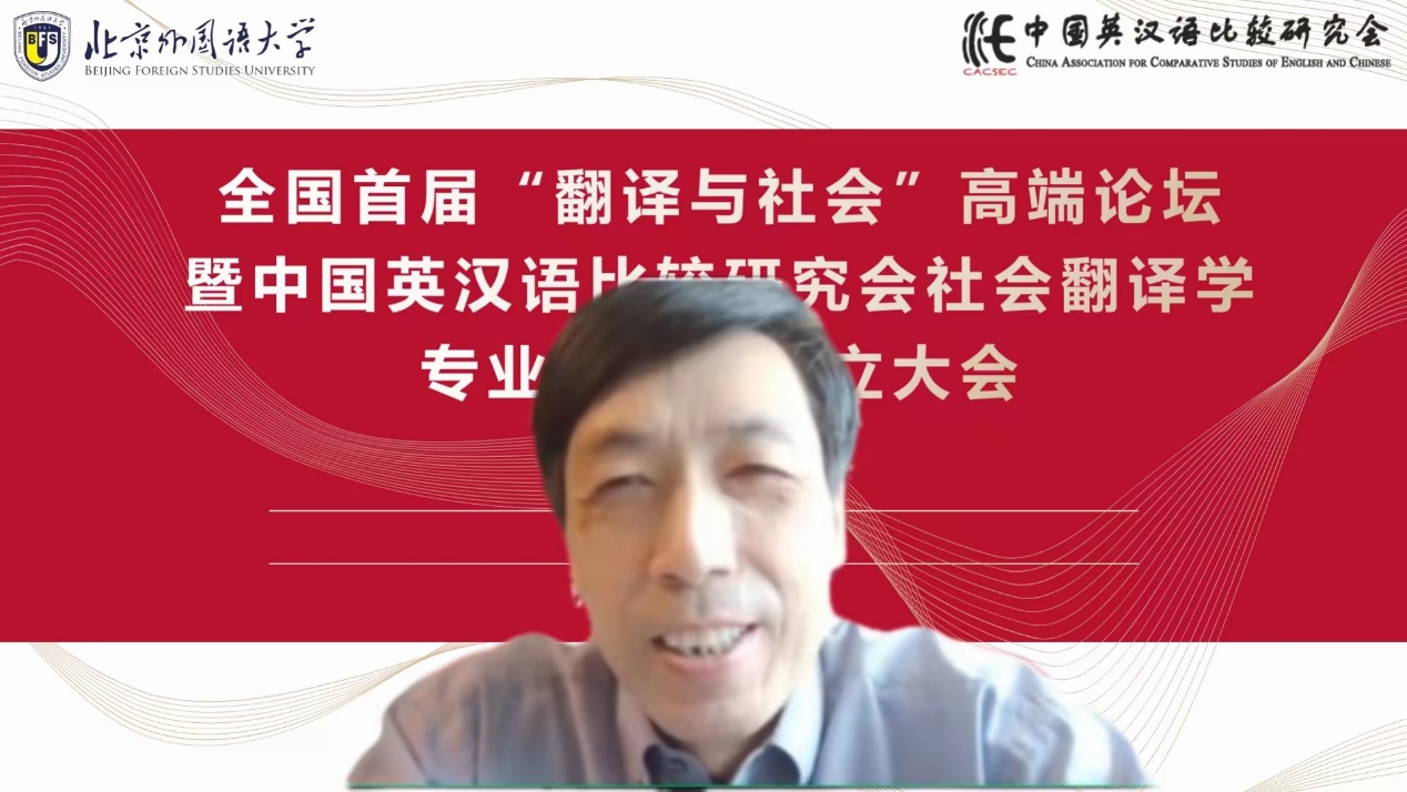 2022年6月11日,全国首届“翻译与社会”高端论坛暨中国英汉语比较研究会社会翻译学专业委员会成立大会通过视频会议和在线直播的形式隆重召开。本次大会由北京外国语大学与中国英汉语比较研究会社会翻译学专业委员会联合主办,由北京外国语大学英语学院承办。