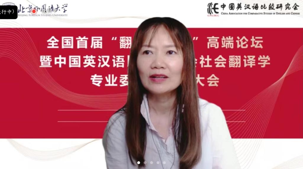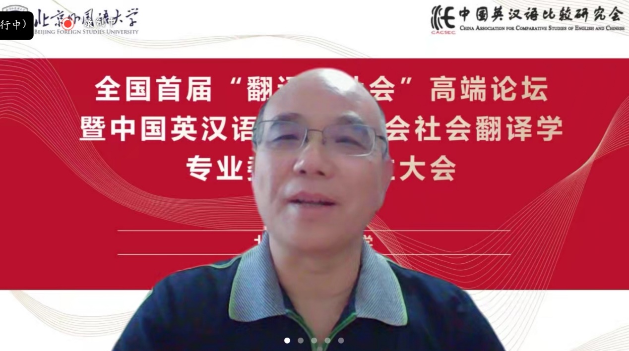 北京外国语大学高级翻译学院院长任文教授主持大会发言