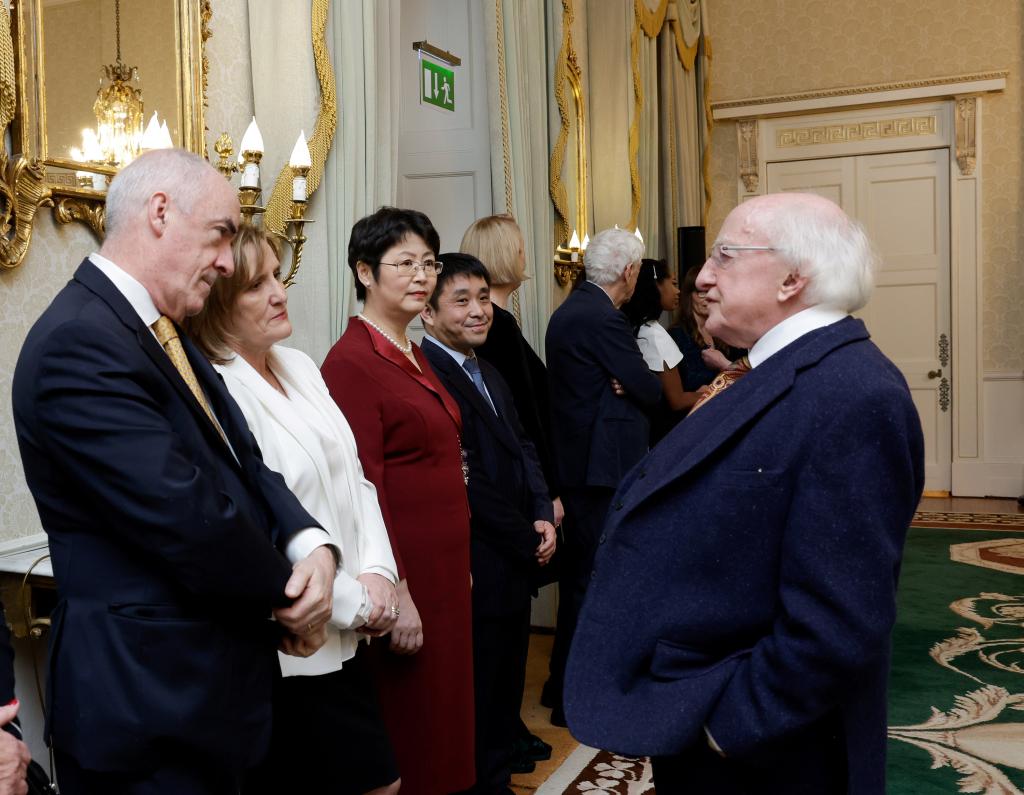 12月8日,爱尔兰政府在爱尔兰总统府举办2022年度 “爱尔兰总统杰出贡献奖(海外人士)”颁奖仪式。爱尔兰总统迈克尔·希金斯出席仪式,发表演奖,并向获奖者颁奖。我校英语学院爱尔兰研究中心主任王展鹏教授、副主任陈丽教授在“企业与教育”类别下获奖。该奖项首次颁发给我国学者,旨在表彰他们为加深中国人民对“爱尔兰文学、文化的兴趣做出的杰出贡献”, “特别是通过建立北京外国语大学爱尔兰研究中心产生的深远影响”。2022年共有来自阿富汗、美国、南非、英国等国的12位各界人士获奖。爱尔兰总理米歇尔·马丁,外交部长西蒙·科文尼等参加相关活动。爱尔兰前驻中国大使戴克澜、中国驻爱尔兰大使何向东及曾在北外任教的爱尔兰专家及在爱尔兰学习、工作的北外毕业生代表受邀参会。