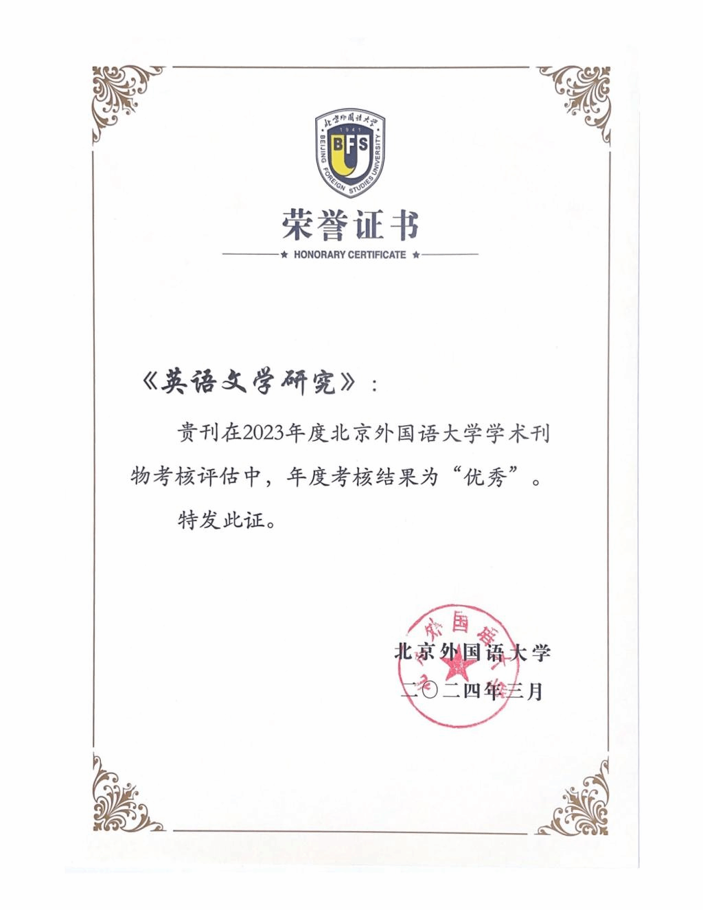英语学院创办的学术集刊《英语文学研究》入选中国人文社会科学核心期刊(AMI)行列,在2023年度北京外国语大学学术刊物考核评估中,年度考核记过为“优秀”。
