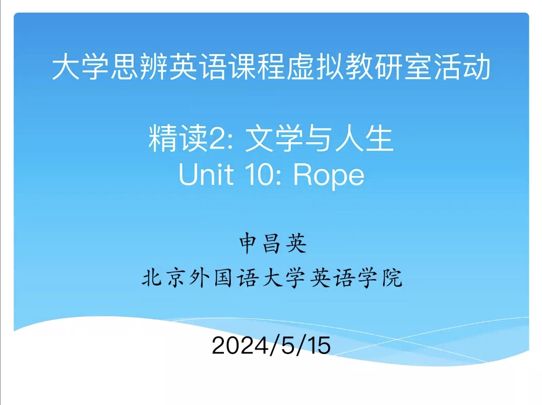 5月15-16日,教育部首批虚拟教研室建设试点“大学思辨英语课程虚拟教研室”成功举办2024年春季第二期虚拟教研活动。此次教研活动由北京外国语大学英语学院思辨英语精读一年级课型组承办。活动邀请申昌英副教授作为教研主讲专家,针对大学思辨英语精读教学,围绕“学生预习及课堂展示活动安排”开展说课和在线直播教学展示两项活动,来自全国各高校1400多位教师在线观摩参与。