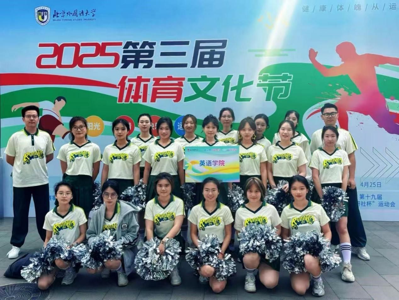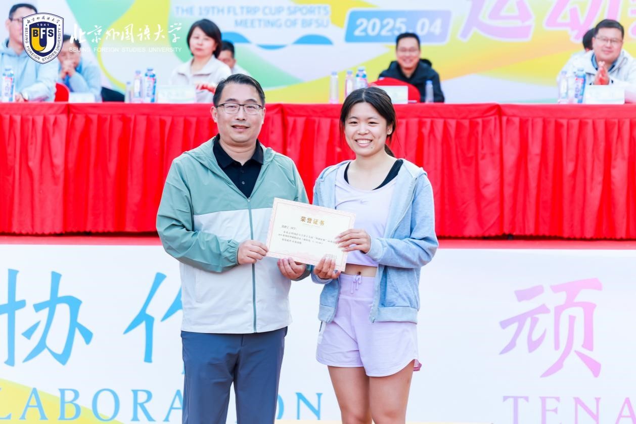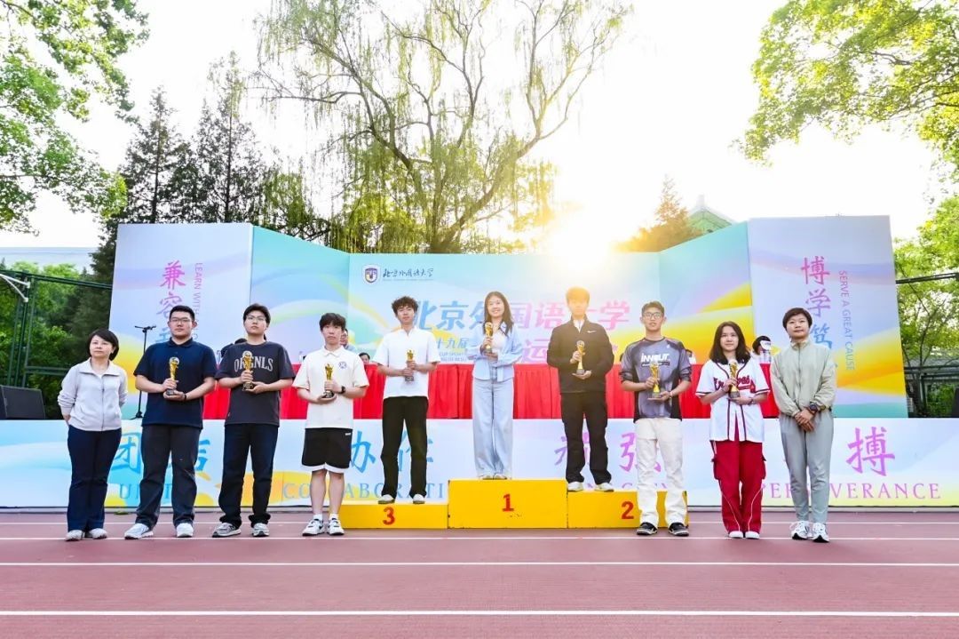 2025年4月25日,北京外国语大学成功举办第十九届“外研社杯”运动会。英语学院教职工和学生发扬顽强拼搏、奋勇争先的体育运动精神,积极参与多个项目的角逐,学院获得了学生组团体总分第二名的好成绩,为热闹的赛场增添了一道靓丽色彩。