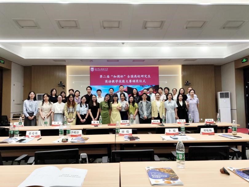 6月15日,第二届“知周杯”全国高校研究生英语教学技能大赛决赛在北京外国语大学东院晨读厅和英语学院417教室举行,北外党委常委、副校长刘欣路,英语学院党总支书记殷悦、院长杨鲁新、英语系主任张小东,外语教学与研究出版社副社长王勇、外语教学与研究出版社基础教育出版分社社长张黎新、基础教育出版分社学术产品部主任史新蕾出席大赛闭幕式。大赛由英语学院主办、外语教学与研究出版社协办。