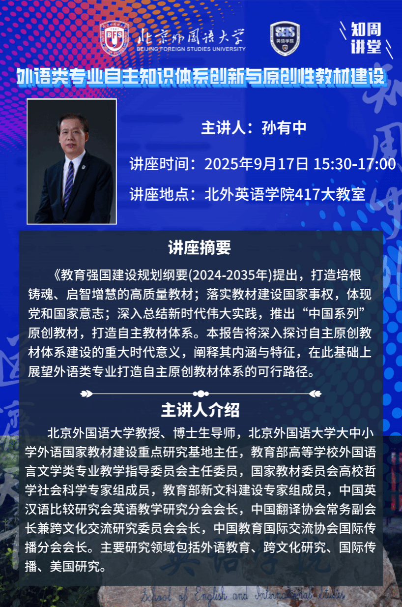 北京外国语大学英语学院“知周讲堂”系列讲座