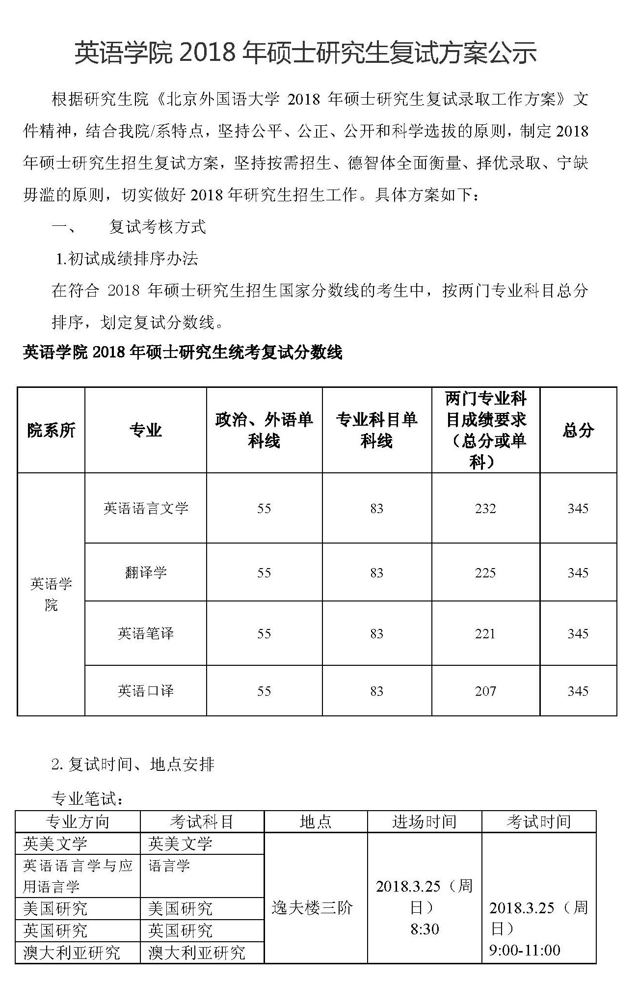 英语学院2018年硕士研究生复试方案公示