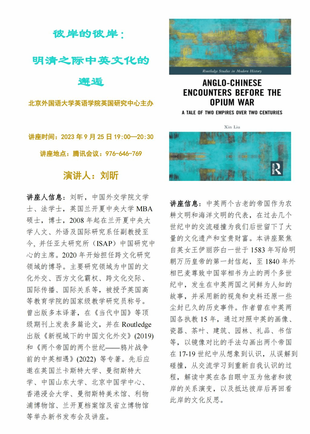 9月14日讲座:Unveiling the Enchanting Tapestry: Modern Chinese Literature in English Translation