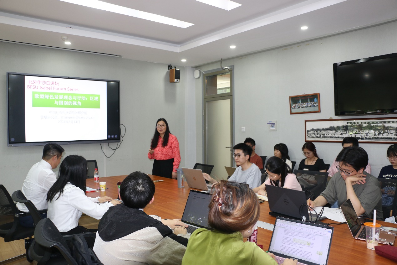 2024年5月14日,中国社会科学院欧洲研究所研究员张敏应北京外国语大学英国研究中心邀请,在英语学院做了题为“欧洲绿色发展理念与行动:区域与国别研究的视角”的学术讲座。此次讲座由英国研究中心主任王展鹏教授主持。