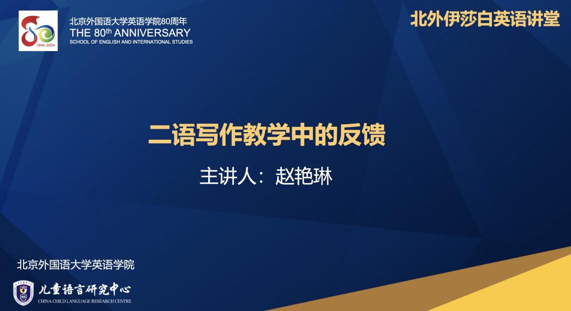 5月13日,北京外国语大学英语学院儿童语言研究中心邀请中国海洋大学外国语学院赵艳琳博士,在线为全国中小学英语教师分享了主题为《二语写作教学中的反馈》的讲座。
