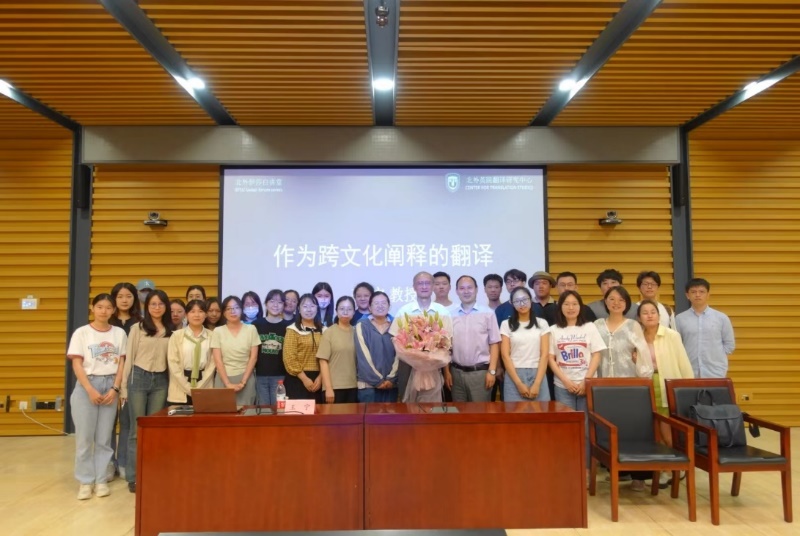 2024年5月23日下午,应北京外国语大学英语学院翻译研究中心、社会翻译学研究中心邀请,上海交通大学人文学院院长、教育部特聘教授、欧洲科学院外籍院士王宁教授在图书馆五层学术报告厅为我院翻译专业师生做了题为“作为跨文化阐释的翻译”的精彩讲座。讲座由北京外国语大学英语学院翻译研究中心主任王洪涛教授主持,吸引了校内外相关专业百余名师生参加。