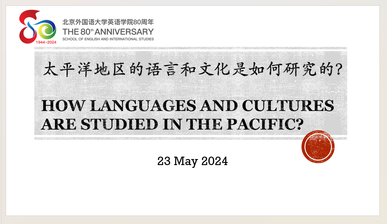 2024年5月23日下午,应北京外国语大学英语学院南太平洋研究中心邀请,汤加语外国专家梅莱奈伊特·塔乌莫艾富拉乌(Melenaite Taumoefolau)博士在线上做了题为“太平洋地区的语言和文化是如何研究的?”(How languages and cultures are studied in the Pacific?)的讲座。讲座由英语学院教师李菅主持,来自校内外多名师生参加了本次讲座。