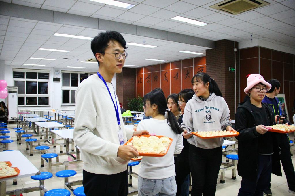 在包饺子的同时,大赛中还穿插了“气球接力”等小游戏,各个班级积极参与。一家英院人,温暖同窗情。在“一起过生日”环节,主办方还为在大赛前后过生日的同学们精心准备了生日蛋糕,引得全场掌声雷动。