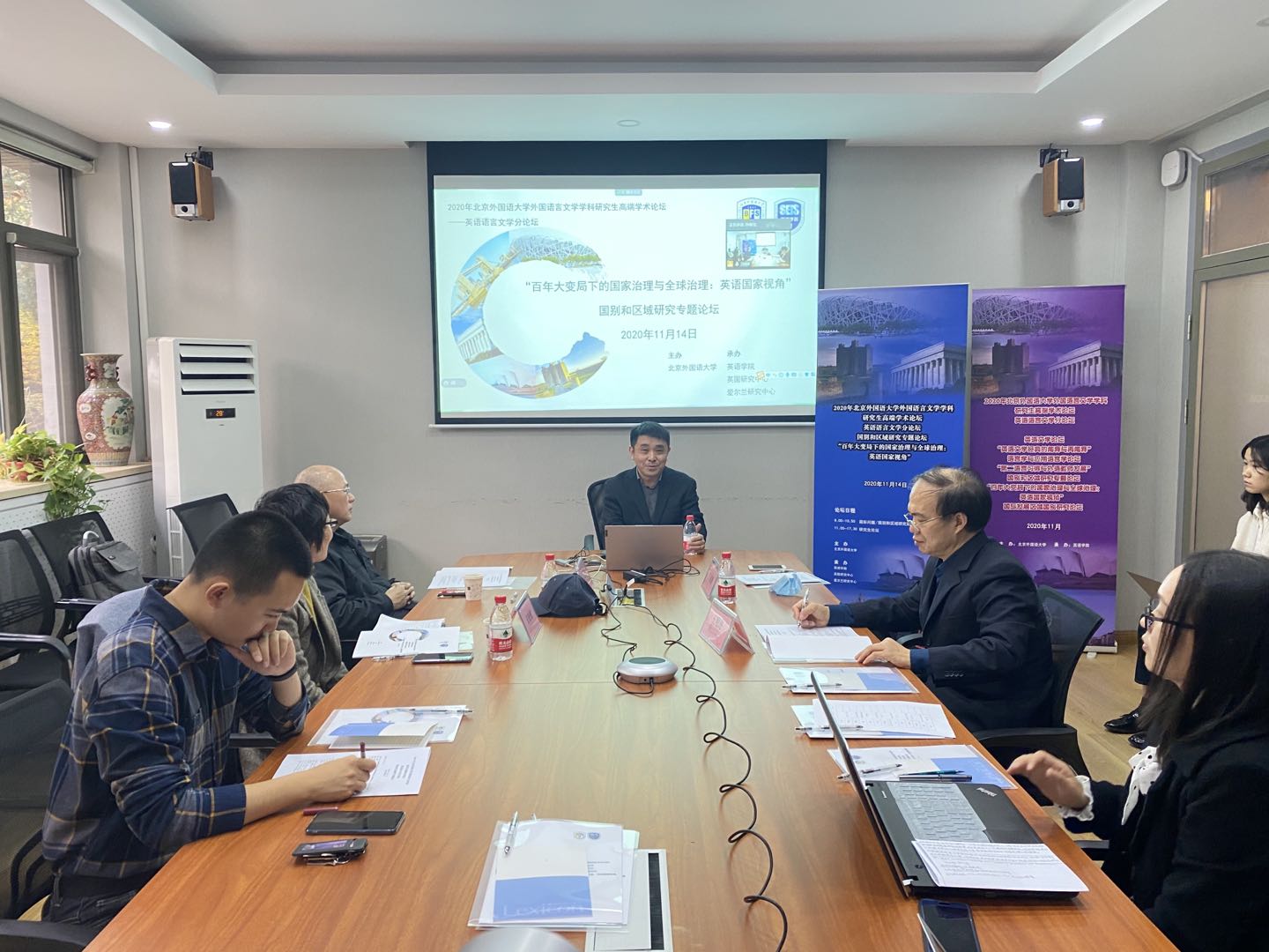 2020年11月14日, 2020年北京外国语大学研究生高端学术论坛英语语言文学分论坛国别和区域研究专题论坛在英语学院举行。论坛由北京外国语大学主办,英语学院英国研究中心、爱尔兰研究中心承办,围绕“百年大变局下的国家治理与全球治理:英语国家视角”主题展开,分为国际问题/国别和区域研究期刊论坛以及四场研究生论坛两部分。