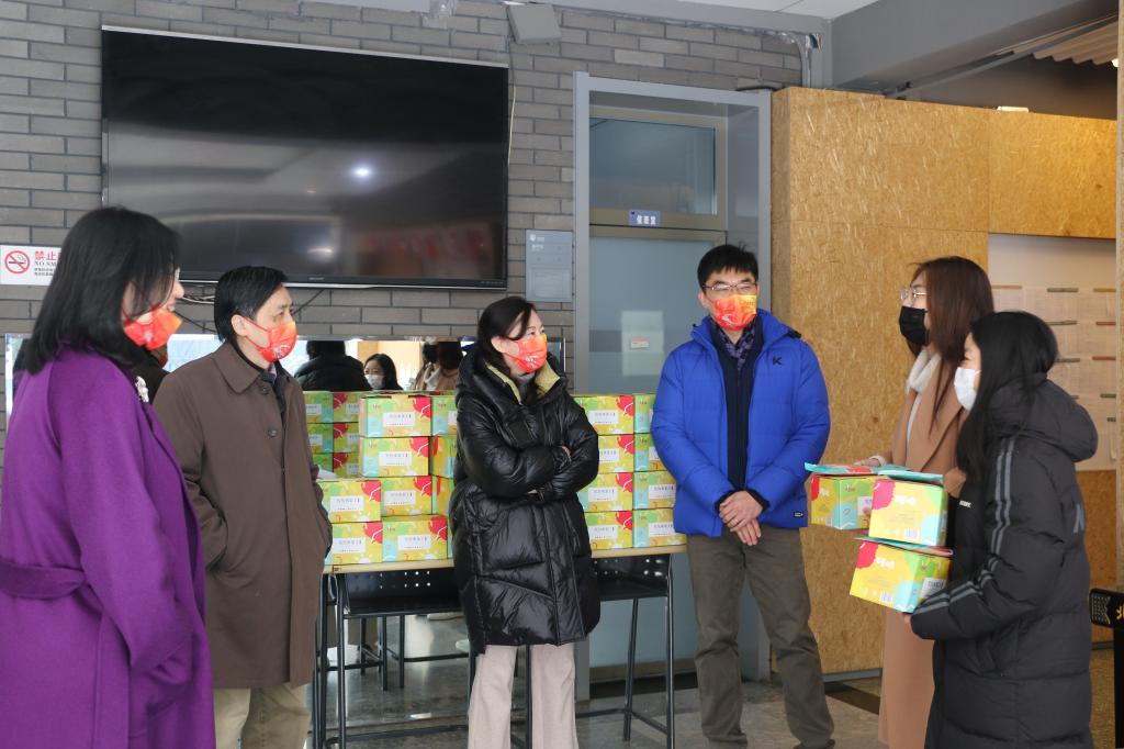 2022年春节临近之际,学院领导老师为留校学生精心准备了慰问品,送去新春的祝福与问候。院长、书记关心留校学生的生活情况,询问了同学们在校期间的饮食住宿等,对毕业年级同学的论文及就业进展情况也进行了了解,对冬奥会志愿者、实习生给予高度赞赏。对港澳台,新疆、西藏等少数民族的同学,院长、书记更是详细了解各方面情况,询问是否习惯留校生活,有问题随时和辅导员老师沟通。