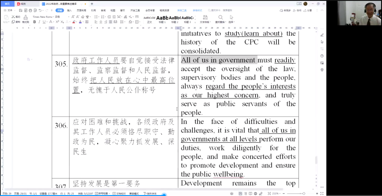 2022年4月27日,中国驻新西兰等国前大使、外交部英文定稿专家、中国翻译协会常务副会长陈明明应英语学院翻译研究中心邀请,为英语学院师生举办了题为“政府工作报告重要表述翻译解析”的线上讲座。 讲座由英语学院副院长、翻译系主任彭萍教授主持。