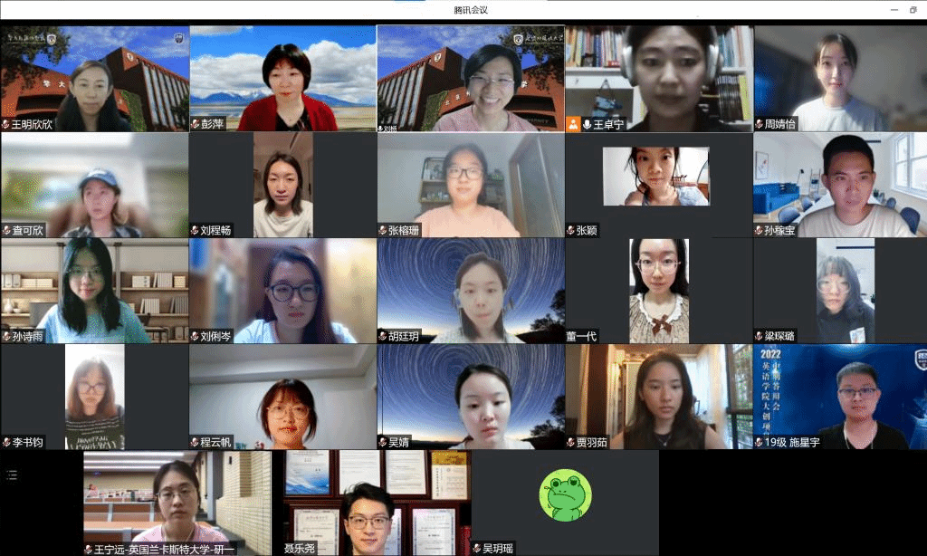 7月11日晚,英语学院为2022年秋季学期赴海外交流学习的同学召开平安留学行前线上培训会。学院党总支书记王明欣、主管合作交流事务副院长彭萍、跨文化研究中心主任刘杨、学院交流合作秘书王卓宁、赴外留学归来学生代表及拟派出的17名学生参加了此次会议。