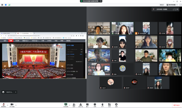 2022年10月16日上午10点,中国共产党第二十次全国代表大会在北京人民大会堂开幕。英语学院党总支高度重视、精心部署,组织全体师生员工以线上、线下相结合的方式同步收听收看党的二十大开幕会直播,全院师生以高昂的精神面貌和饱满的热情认真听取了习近平总书记代表第十九届中央委员会向大会做的报告。