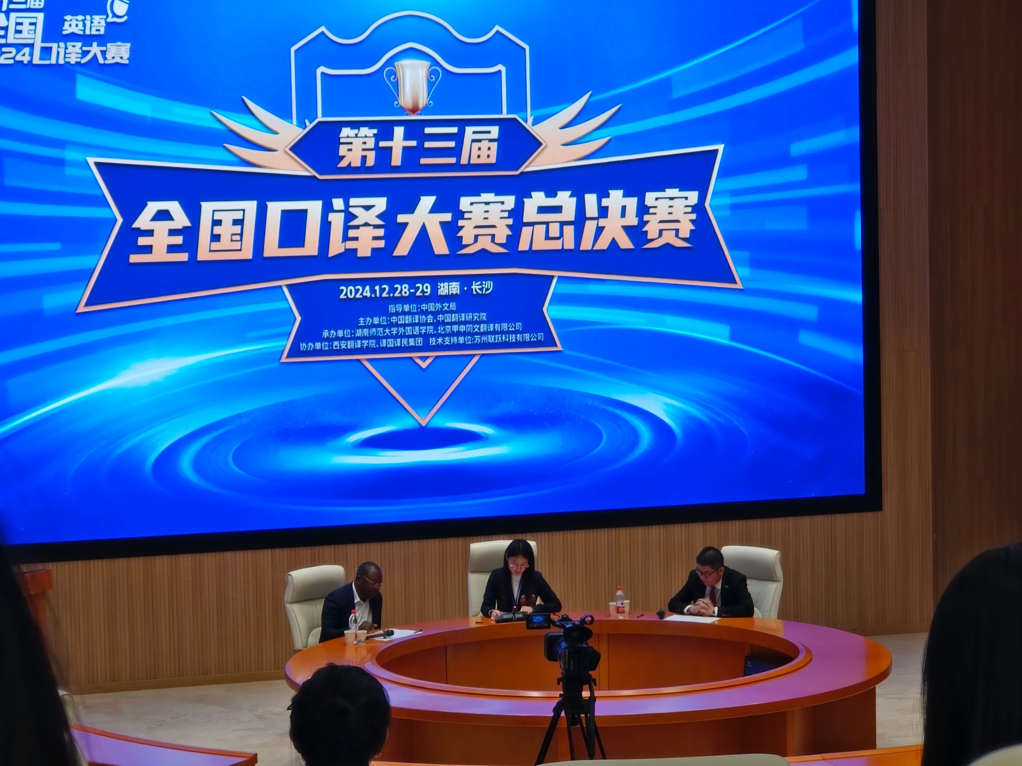 2024年12月28日-29日,由全国口译大赛由中国外文局指导、中国翻译协会和当代中国与世界研究院主办的第十三届全国口译大赛(英语)总决赛在湖南师范大学举行。