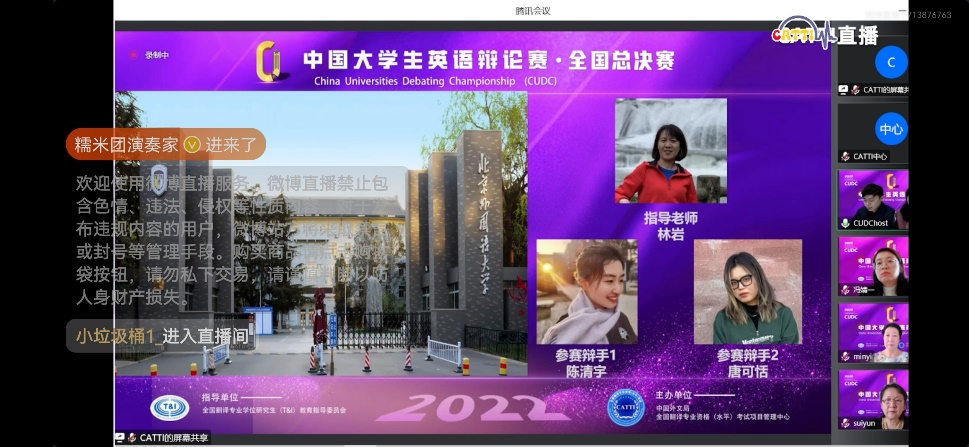 唐可恬、陈清宇夺冠2022年中国大学生英语辩论赛