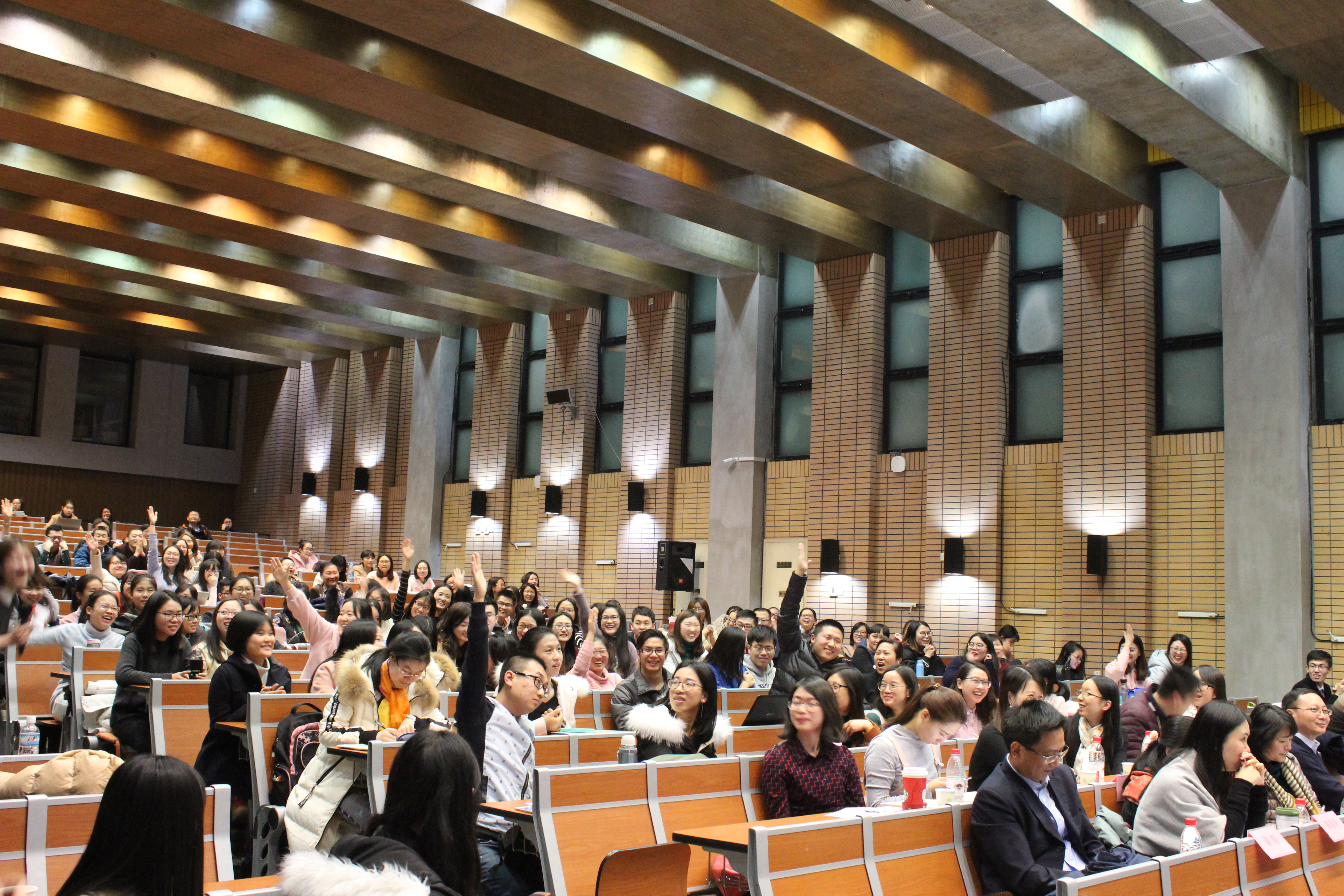——比赛期间穿插了观众互动问答环节,题目为当下时事热词,答对题目的幸运观众可获得英语学院提供的精美书籍。