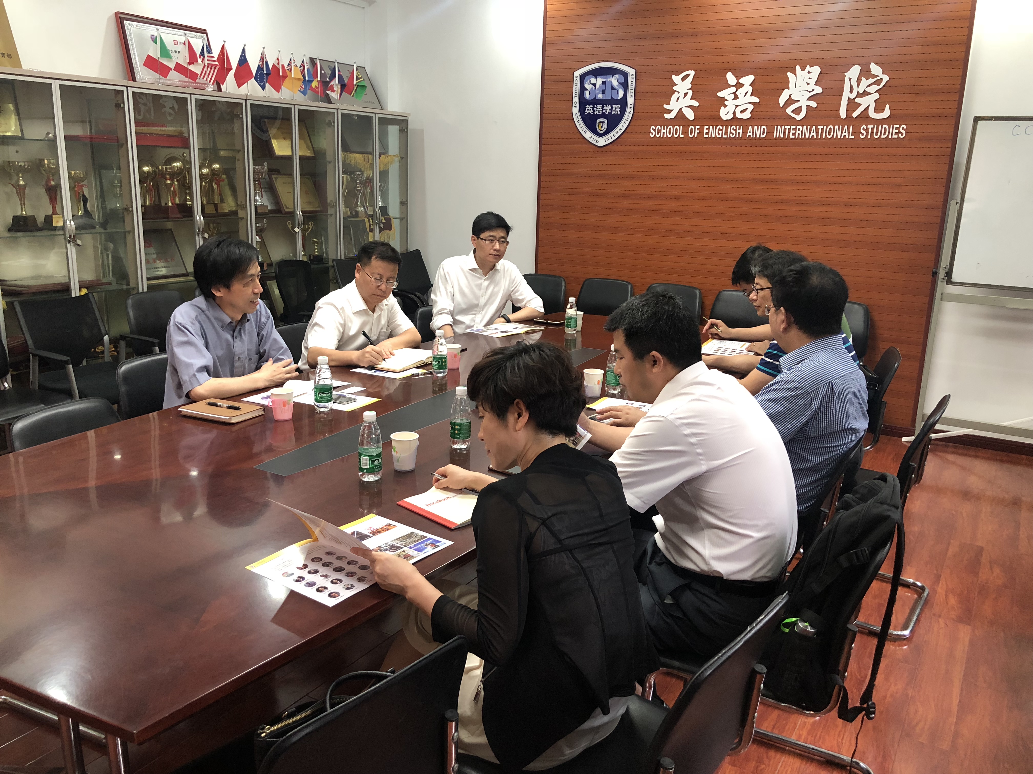 ——会上,张剑院长从学院师资队伍、课程设置、人才培养、合作交流及学生活动等方面做了简单介绍;北方民族大学外语学院副院长也介绍了该院的基本情况。双方就人才培养、学术交流等方面合作和可行性进行了亲切友好的交流,并希望日后能够有更多互相学习的机会。