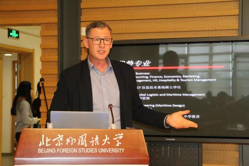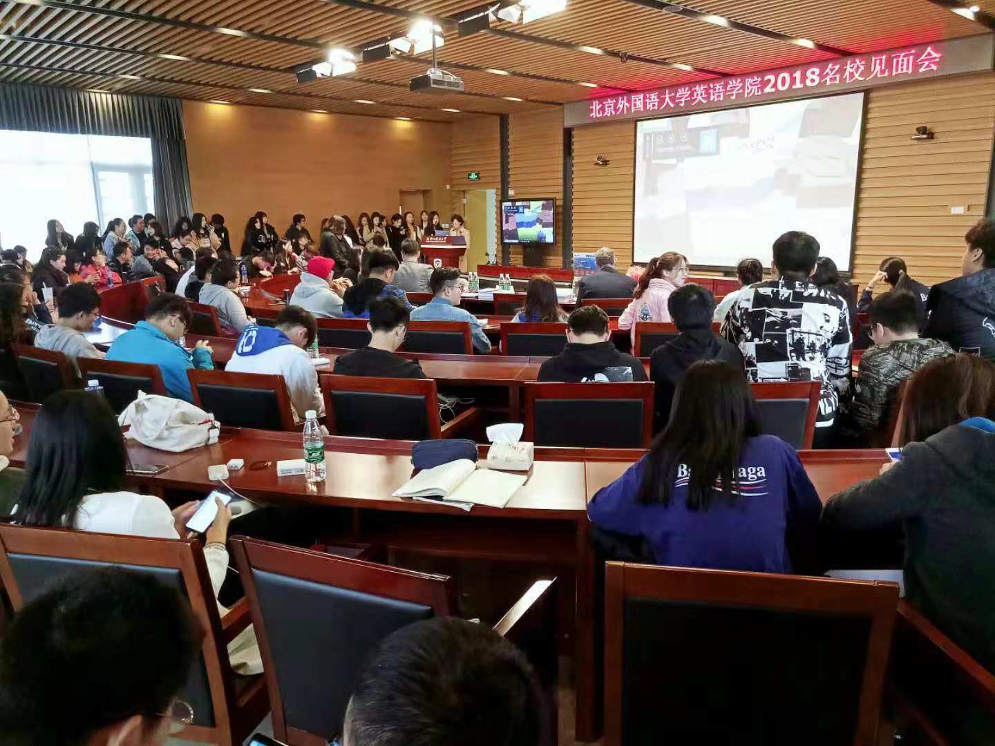 10月22日至23日下午,北京外国语大学英语学院在校图书馆五层学术报告厅顺利举办了国外名校见面会。英语学院院长张剑、副院长谢韬与来自英国、澳大利亚多所大学的招生主管进行了交谈。其中包括英国杜伦大学、谢菲尔德大学、伯明翰大学、兰卡斯特大学等15所名校。同时还在活动现场与同学们进行了交流。同学们对这次名校见面会的举办,特别是对国外多所大学招生主管的现场讲座和介绍产生了浓厚的兴趣,不断积极提问,现场气氛活跃。