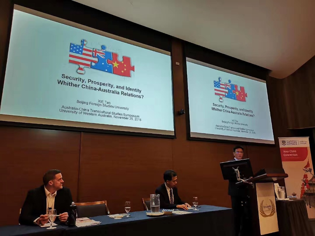 11月28-29日,第六届中澳关系暨跨文化研究论坛在西澳大学成功举行。中国澳大利亚研究会会长、我校副校长孙有中教授、英语学院副院长谢韬教授、澳研中心主任李建军和英语学院刘杨博士参加本次会议。本次论坛的主题是“中国的崛起与澳大利亚”,数十名来自中澳两国的顶尖专家和学者围绕中澳关系、经贸往来、跨文化交流等分议题进行了坦诚的交流。