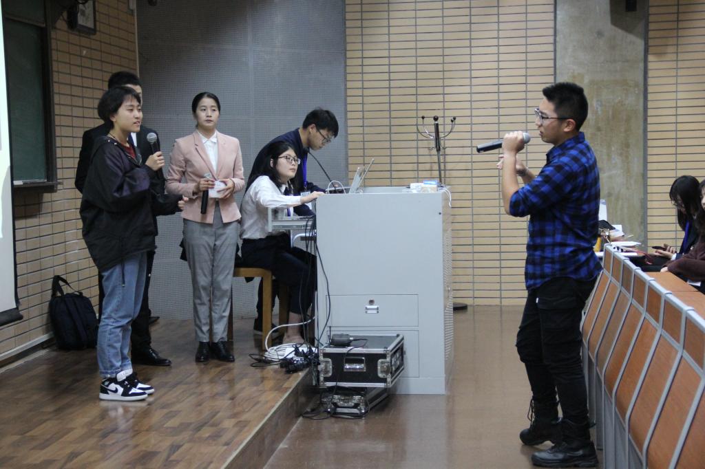 2019年11月2日下午两点,学而思杯·第十九届首都高校外院联盟英文电影配音大赛复赛在北京外国语大学逸夫楼第一阶梯教室拉开帷幕。