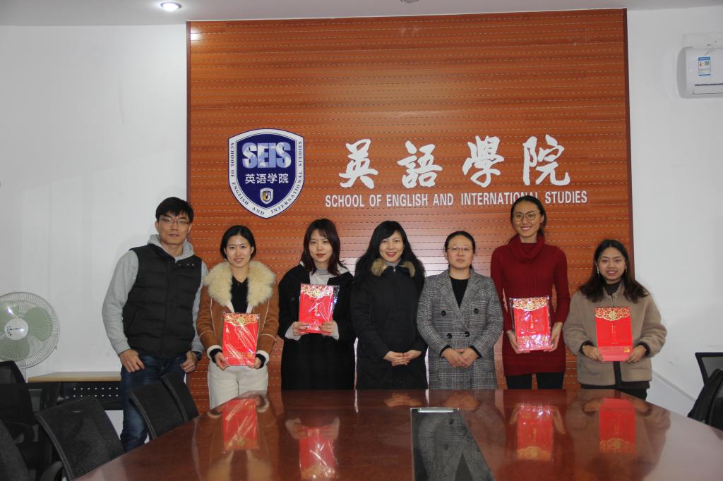 2020年1月2日,英语学院召开2018—2019学年思必锐奖学金获奖同学座谈会。北京思必锐翻译有限责任公司资源部主任王艺露女士,前来英语学院与5位获奖同学见面座谈。辅导员张春霞、于承杰老师参加。